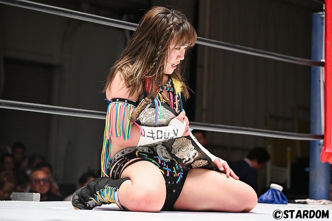 バックステージに戻った星来は、不透明決着に終わった試合へのモヤモヤを語りつつ「あと1つ自分が本当に悔しかったのは……これ言ったら『チャンピオンとして弱い』とか色々言われるかもしれないけど、結構この10分3本勝負に対して、結構批判が多かったんですよ。だから自分はハイスピードの歴史を変える、変えるっていうのに必死になりすぎて、ちょっと焦りすぎたかなって思った。もう1回、15分1本勝負っていう時間の中でゆなもんと決着付けられるように頑張りたいなって思いました。……すいません」と憂いを帯びた表情で吐露した。