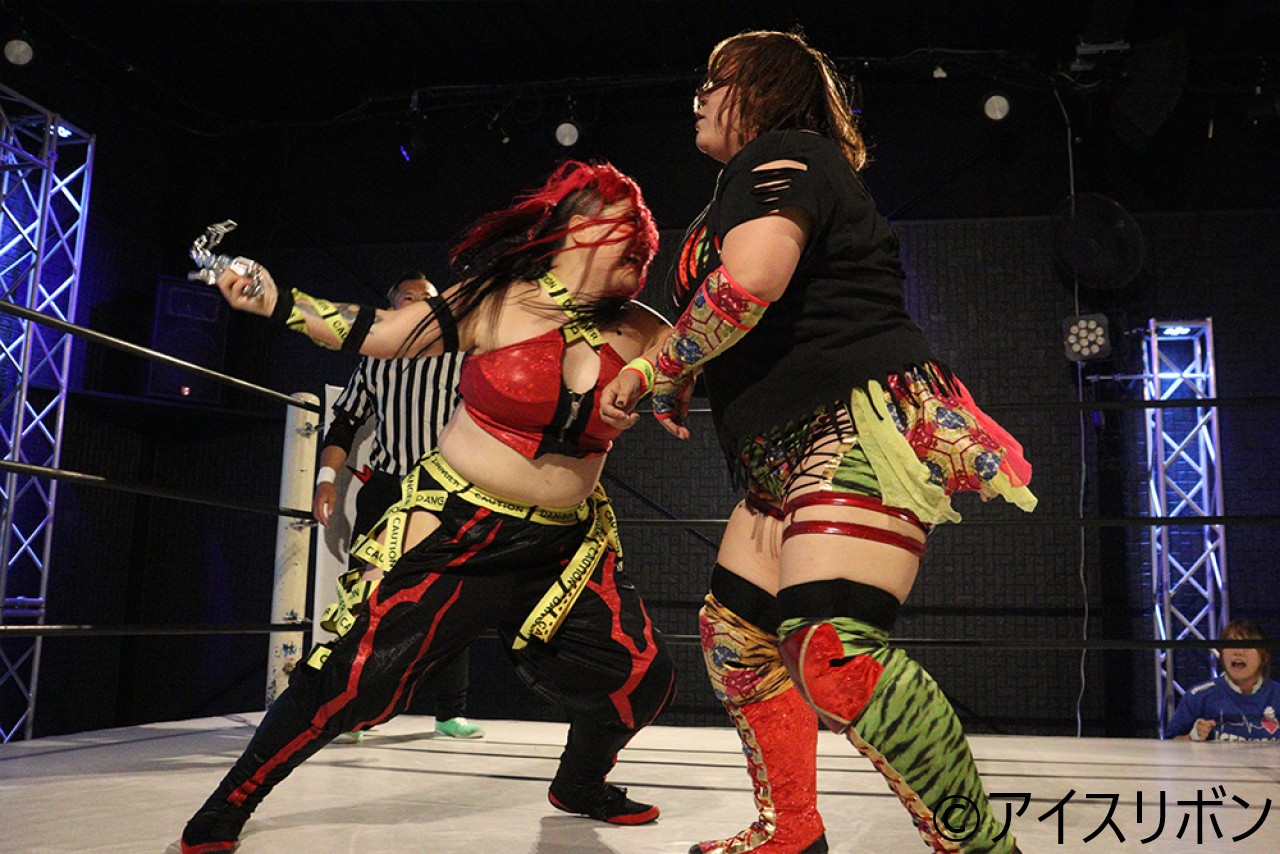 来年3月の引退を発表したhotシュシュのキクが参戦。トトロとの1回戦に挑んだ。握手の腕を引き込んだトトロがブレーンバスターを狙うが、こらえて着地したキクがローキック連打。蹴り足をキャッチしたトトロがボディスラムからボディプレスもキクがかわす。