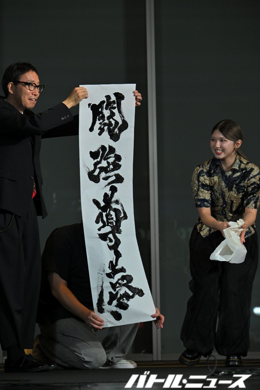 その後は、ハロープロジェクトの『アンジュルム』の元メンバーであり、書道家として新日本プロレスと関わりの深い竹内朱莉さんが登場。