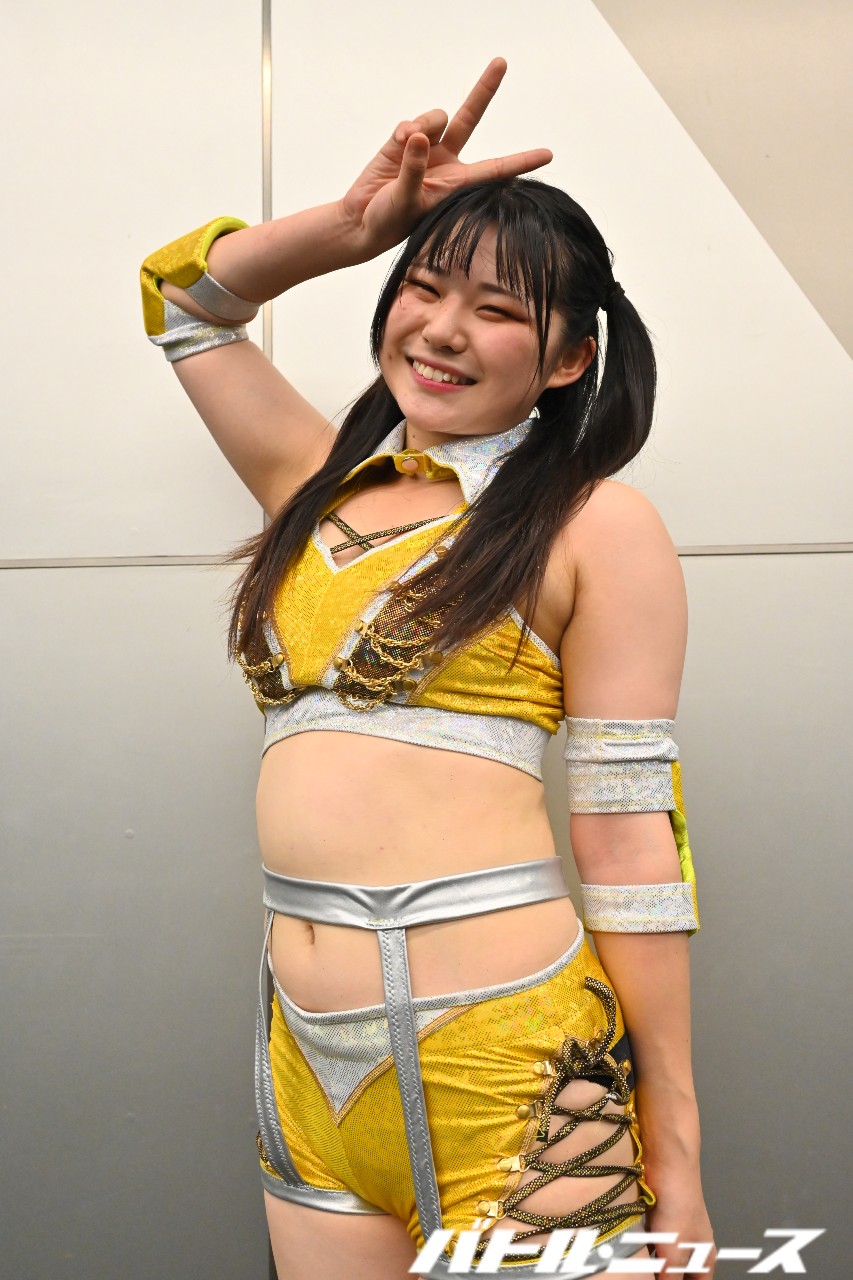 バックステージに戻ったかなは「ドキドキで、一瞬でした。多分10分くらい試合やったんですけど、1分くらいで終わってたみたいな感じで。すごい緊張したんですけど、ゆきなさんは練習生の時からすごく良くしてくれて、応援して下さる皆さんとか、それこそ今日闘ってくださった多恵さんと妹加さんにもたくさんいろんなことを教えていただいて、頑張って出来た集大成だったかなと思います!」と心底楽しそうな様子でコメント。
