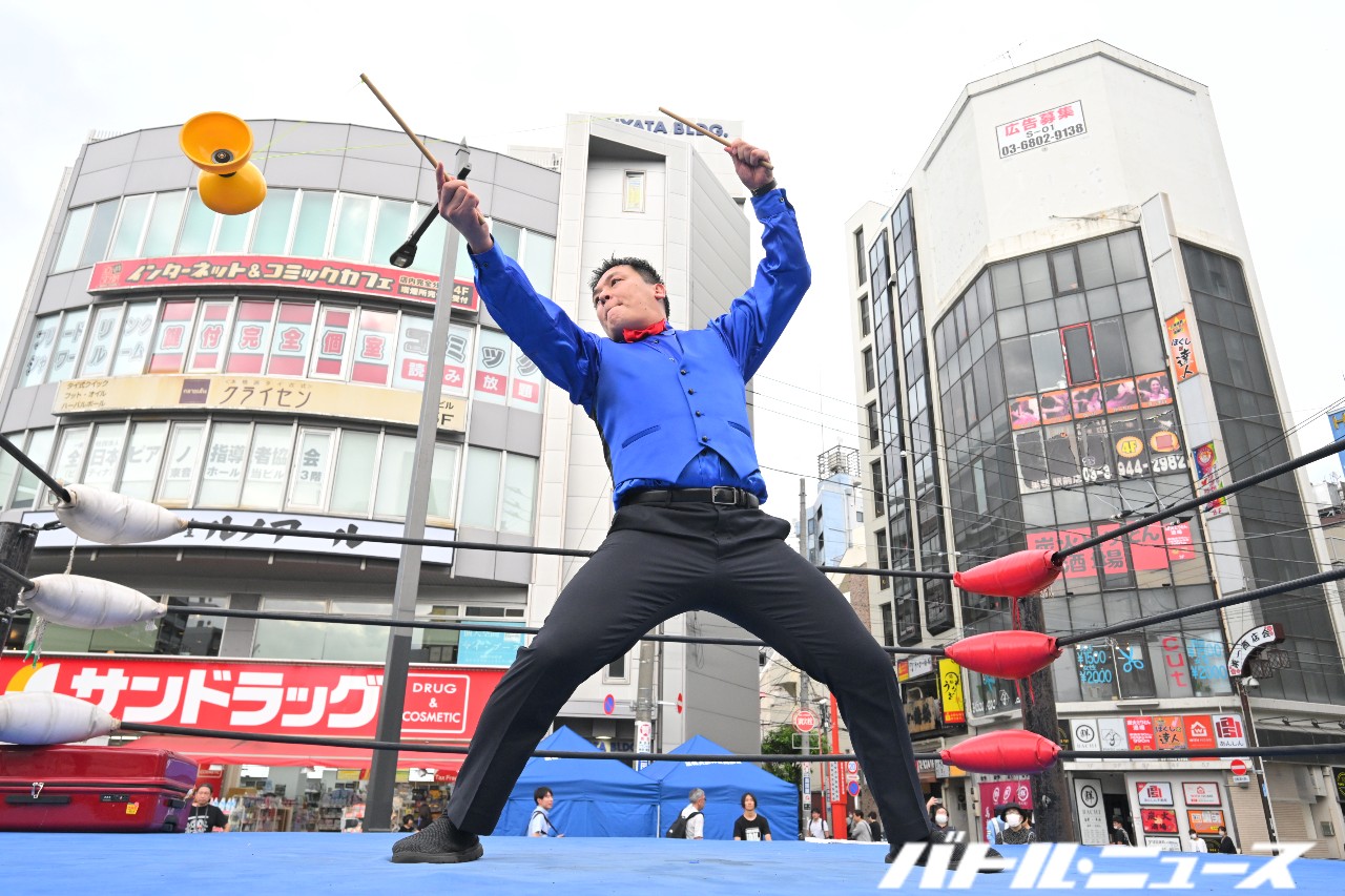 昨年は“プロレスと演芸は日本の伝統文化”と位置付け、力道山世代の祖父母から孫世代へ文化の継承をテーマに実施。今年は大道芸とプロレスをメインに据えて商店街振興と文化伝承を兼ねたイベントとして行われている。
