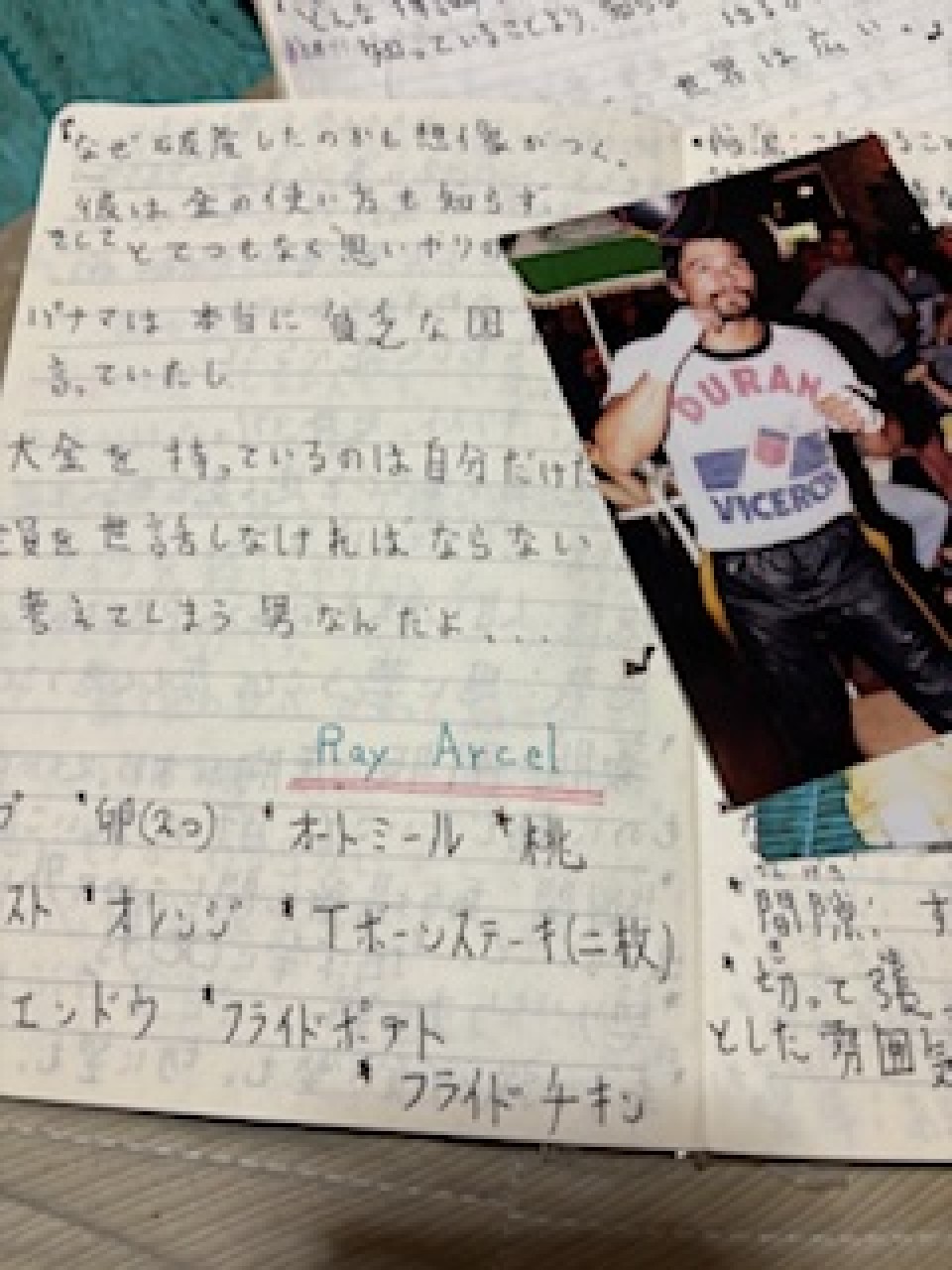 矢野「ですね。じゃ、ちょっとお待ちいただいて…。(バッグをガサゴソ。4,5冊のノートが取り出される)これ。いろんな出来事をノートにつけたりしてるんです。」