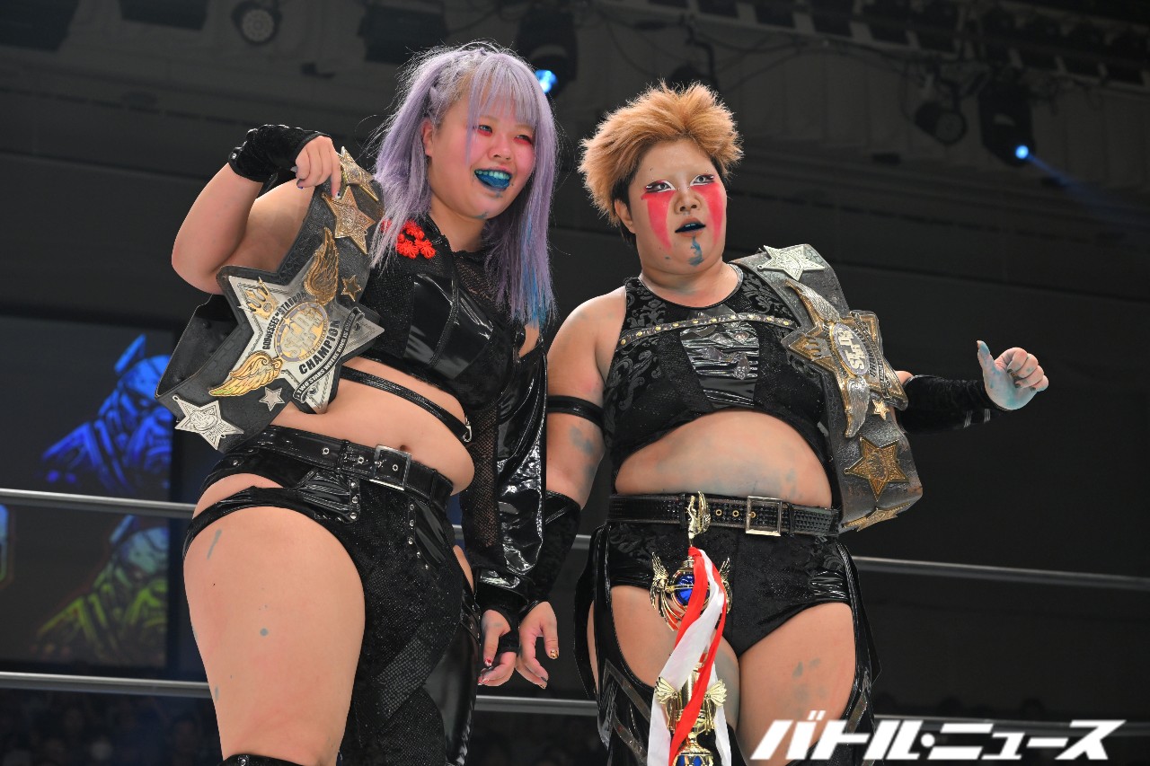 タッグ王座であるゴッデス・オブ・スターダム王座を持つのは【H.A.T.E./BMI2000】の刀羅ナツコ&琉悪夏。