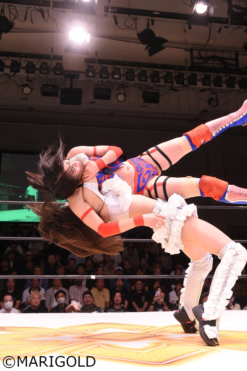 橘「『今勢いに乗ってるね』ってすごい言ってもらえてて、今日は絶対に絶対に勝ちたかったんですけど、やっぱり心希も勢いがあって3カウント取られてしまったんですけど、私は絶対に心希から3を奪い返して見せて、もう裏投げも投げさせたくないです!もっともっと実力をつけて強くなっていきます!」