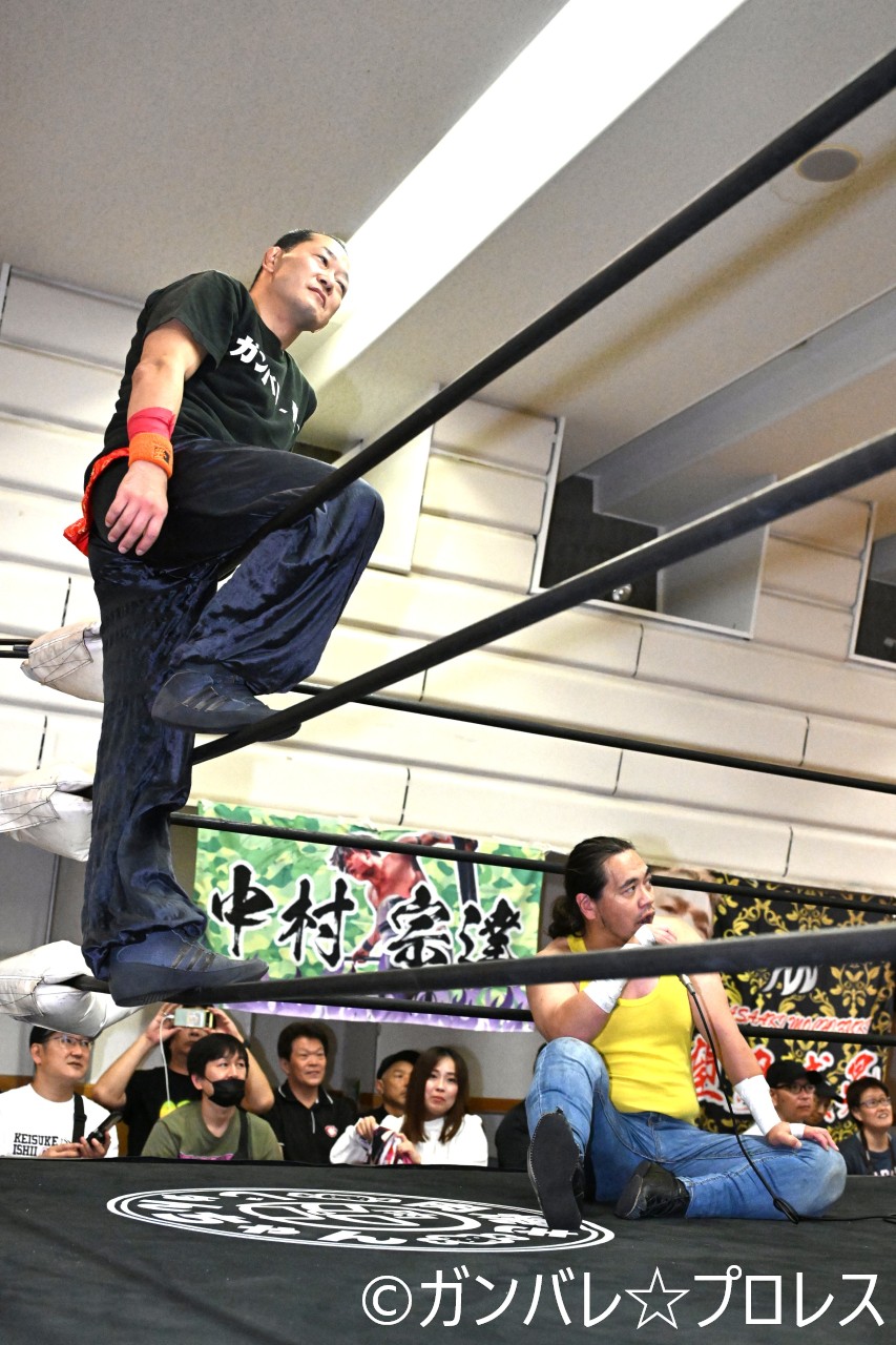 挑戦が決まった大家は「SOGのシングルもタッグも獲ったことないけど、俺がガンプロをつくった人。なのに、どっちも獲れてません。それが悔しい。一番下だった川上があんなに頑張ってて、もうBASARAから獲り返すしかないんだよ。だったら、俺が行くしかないと思って、思わずリングに上がって、パートナーなんて考えてなかったけど。気付いたらいるじゃん。付き合いも長いし。代表として、あの2人からベルトを絶対に獲り返します」、趙雲子龍は「私と大家さんは1998年、日本大学学生プロレスで修行して。知り合って27年になるけど、いまだに大家さんのことが分からない。だけど、こんな大家さんの扱いに一番慣れてる自信がある。この摩訶不思議な男が、あの2人を倒すところを、私がつくりあげてみせる」とベルト獲りを誓った。