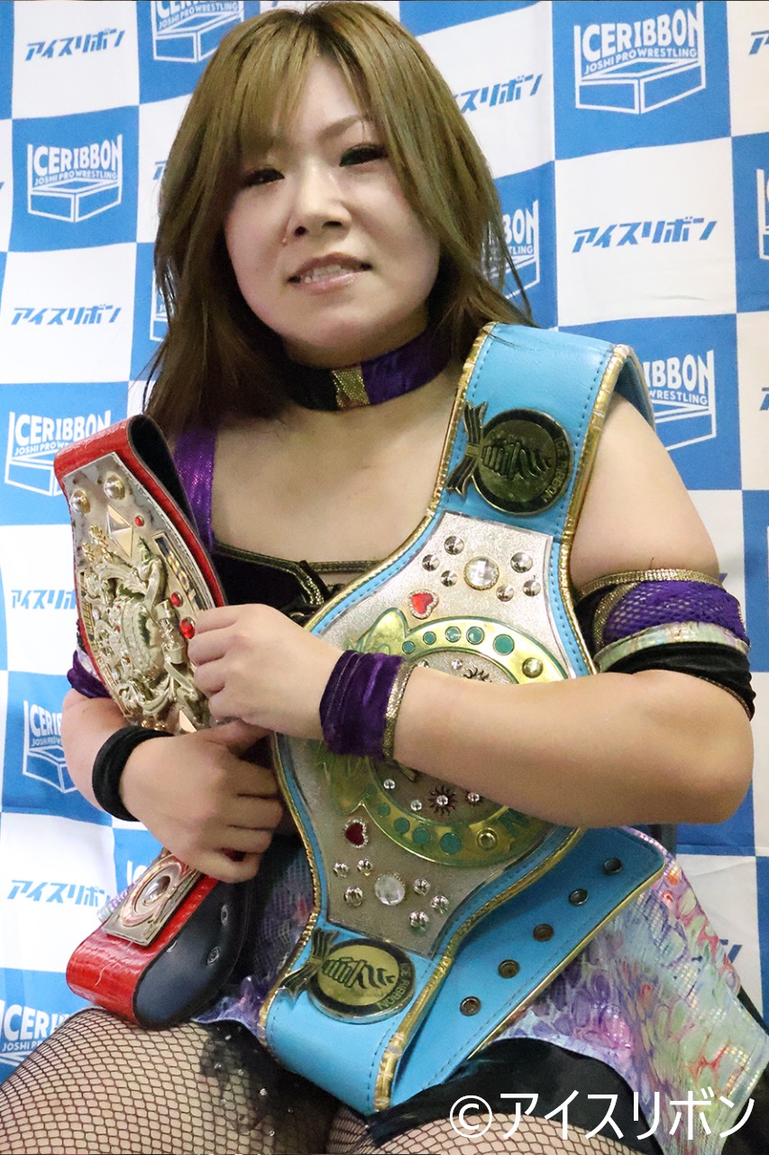 「もちろん負けるわけにはいかないですし、私がアイスに入って思うことっていうのは、所属選手の試合での当たりが強くなってきたなって、すごく思うので、それはいい刺激として私は感じているところがあるので、それをもっともっとステップアップして、私がトップにいることで、他の選手に刺激を与えて試合をさらにさらに盛り上げていけるんじゃないかなって思うし、それが見せ所というか、これからもトップの座は簡単には渡すつもりもなし、私がトップであり続けて、アイスリボンの絶対王者を名乗り続けていきたいと思います。そこに割って入ってほしいなっていうのは私のひとつの願望ですね。」