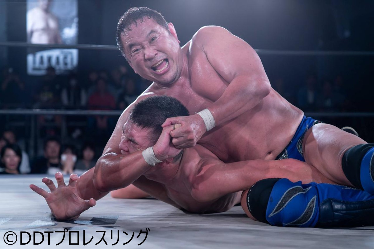 体調不良(狭心症)と経営に専念するため、昨年7・21両国大会をもって無期限休業に入った髙木は医師からGOサインが出たことで、11・3両国で葛西陽向を相手に復帰戦を行う。それに先駆けて、今大会の第1試合で髙木は一般人・澤宗紀とエキシビションマッチ(5分1本勝負)を敢行。いきなり澤と張り合った髙木はドロップキックも繰り出したが、澤のシャイニング・ウィザードでわずか28秒で秒殺された。ここで、この一戦を見たいがために自腹でチケットを購入して観戦していたDDTの今林久弥GMがリングに上がり、「16年ぶりのシングルマッチと言って、チケット売っておいて、このザマか! そういうのは詐欺師と言うんだよ。CyberFight副社長が詐欺師なんですか!」とブチ切れ! 何の権限もないはずなのに、今林GMは再試合を指令。
