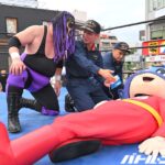 真琴はカカト落としを見舞い、ミステリー&橋之介とともに太鼓の乱れ打ち。しかし、松澤さんは「ヴェアアアアアッ!」と獣の雄叫びをあげて振り払い、3人をモンゴリアン・チョップで圧倒。さらに顔面騎乗式ブロンコバスターを狙うが、ブサイク(ミステリー)とブサイク(橋之介)と超ブサイク(真琴)しかいないということで断念。