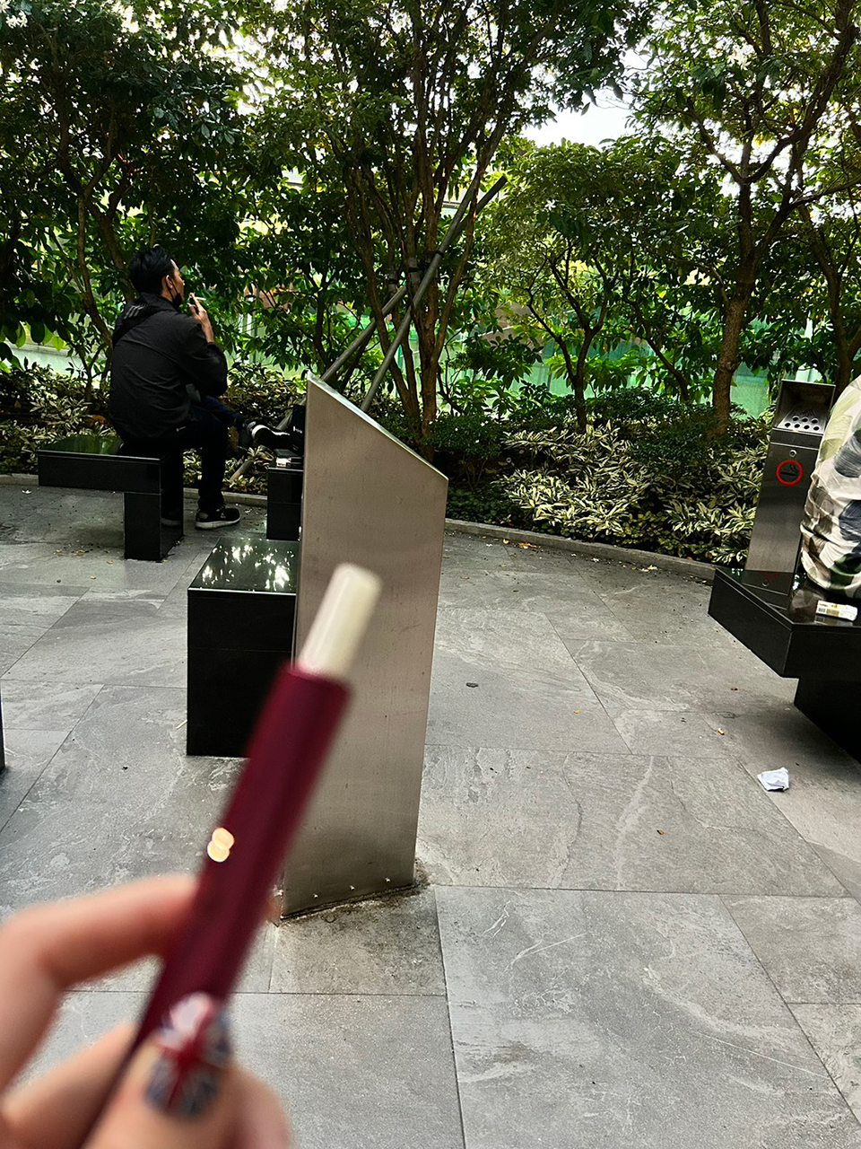 「悠長にフィッシュアンドチップスとか食べながらイギリスを楽しんでたんですけど、今度は観光を楽しみすぎて帰りの飛行機の時間が迫ってて。やばいってなって、タクシーやら電車を乗り継いで、なんとか空港まで向かったんですけど、もうチェックアウト過ぎてて韓国経由にすら乗れなくなっちゃった。えー!?うそ~帰れないじゃん!ってなって、また急遽便を変更したら今度はシンガポール経由になったんです。いやもうアジアに帰れるならそれでいいです、とにかく帰りたいと思ってその便にはなんとか乗れたんですけど、シンガポールに着いたらすぐとりあえず喫煙所でiQOS吸いながら、やっとアジア圏まで戻ってこれた感動を噛み締めてたんですよね。その時に私何も考えずにインスタグラムに『ようやく』みたいな感じの写真を載せちゃって」