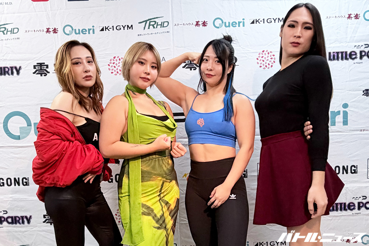 ちゃんよた「PPPTOKYO究極生命体ちゃんよたです。12月9日の試合でデビュー戦の相手を務めさせていただくということで、自分自身、先日丸4年、プロレスデビューしてから丸4年ってことで、初めてのデビュー戦の相手となります。自分のね、究極生命体スクールの一期生であるのんちゃんと、こうやって戦えるってことはすごく嬉しいですし、デビュー戦の相手に選んでいただいたこと、すごく嬉しいです。私ものんちゃんもバックボーンがセクシー女優っていうことで、元セクシー女優ってことが良いとか悪いとか、それは置いといて、その当時の私たちにとってはそれが最善の判断で、そういうふうにやってきたっていう過去があるんですけど、やっぱり元セクシー女優のプロレスラーとしてデビューして自分が思ったのは、やっぱりお客さんの声だったりとか、それこそ他のプロレスラーの声だったりとかっていうのは、やっぱり最初は厳しいものが多くて、でもやり続けていくと、その声が応援にいつしか変わってくるっていうのを自分自身体験しているので、最初はもしかしたら厳しい声とかもあるかもしれないんですけど、まずデビューして、そこからがスタートなので、頑張って、プロレスラーとして道を歩んでいってほしいなと、私は思っています」