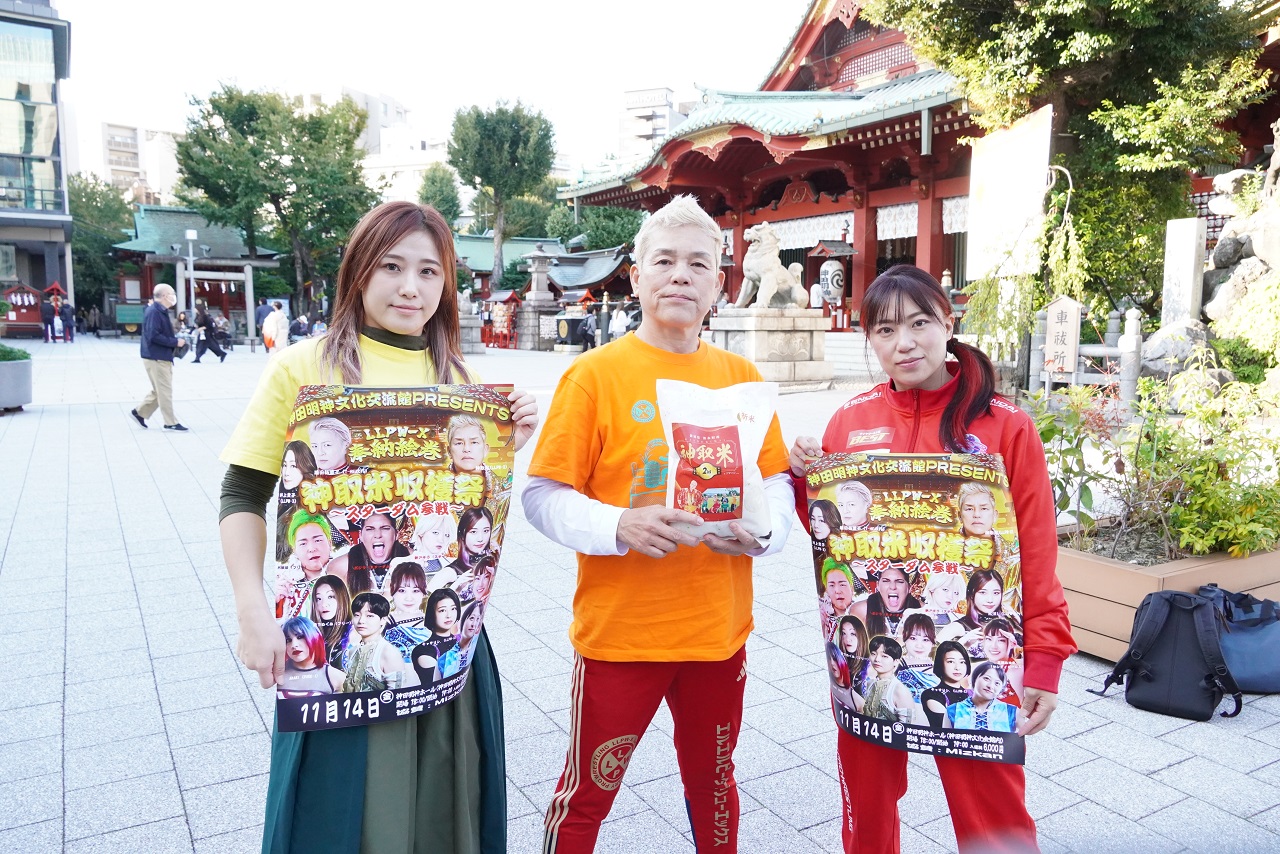 ※LLPW-Xが田植えから収穫まで参加した『神取米』と感謝の心を、プロレスという形で奉納。会場で新米が販売される。また、井上貴子がアンバザダーを務めるミツカンより来場者へのプレゼントあり。