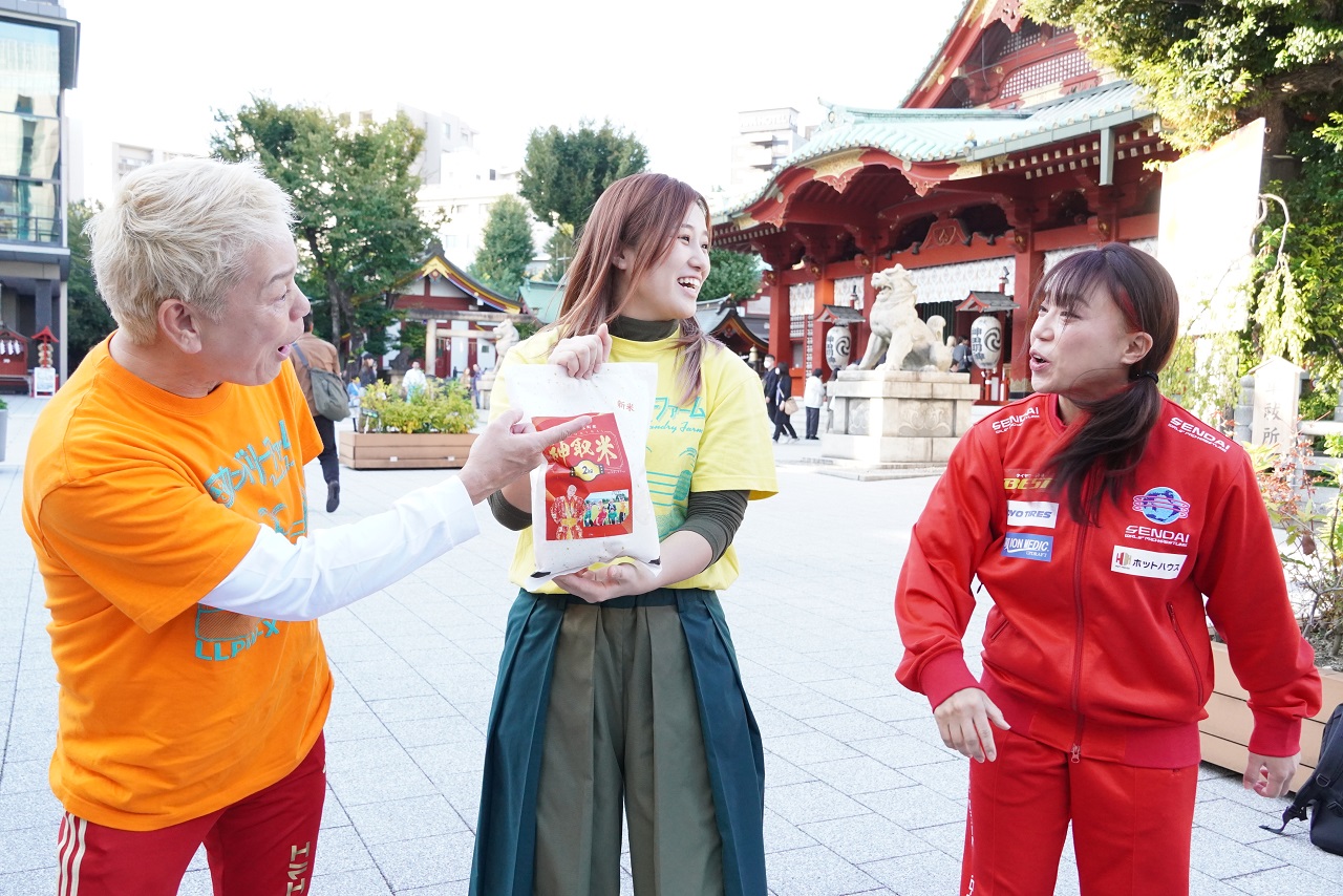 神取「今日、自分誕生日! そして『神取米』の発売も今日! 話せばすごい長くなっちゃう。まずお米が大好きということもあり畑から探していって、農業も初めてで去年サツマイモを作ったんですが、大雨で畑が壊滅してしまいました。それでもくじけずにお米を作ることになり、今年初めて稲刈りができて。猛暑で生育が1メートルのところが70~80cm。そんな中で出来上がって神がかってますから(笑)。センダイガールズもお米(農姫米)作ってるじゃん。それもあって、お祭りでワイワイできたらいいな。ゆくゆくは“お米対決”みたいなね! そんなのがあったらいいなって感じです」
