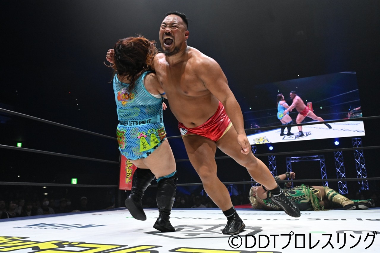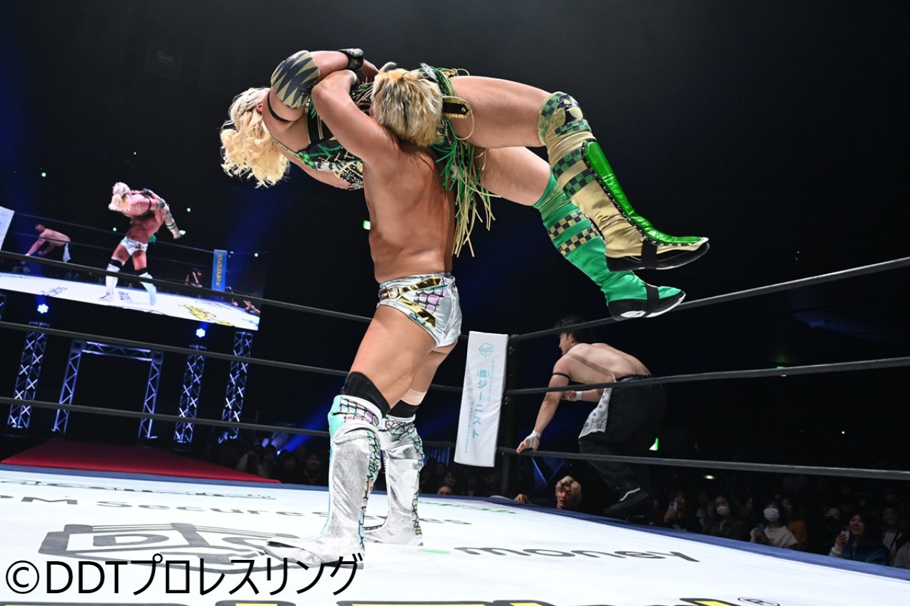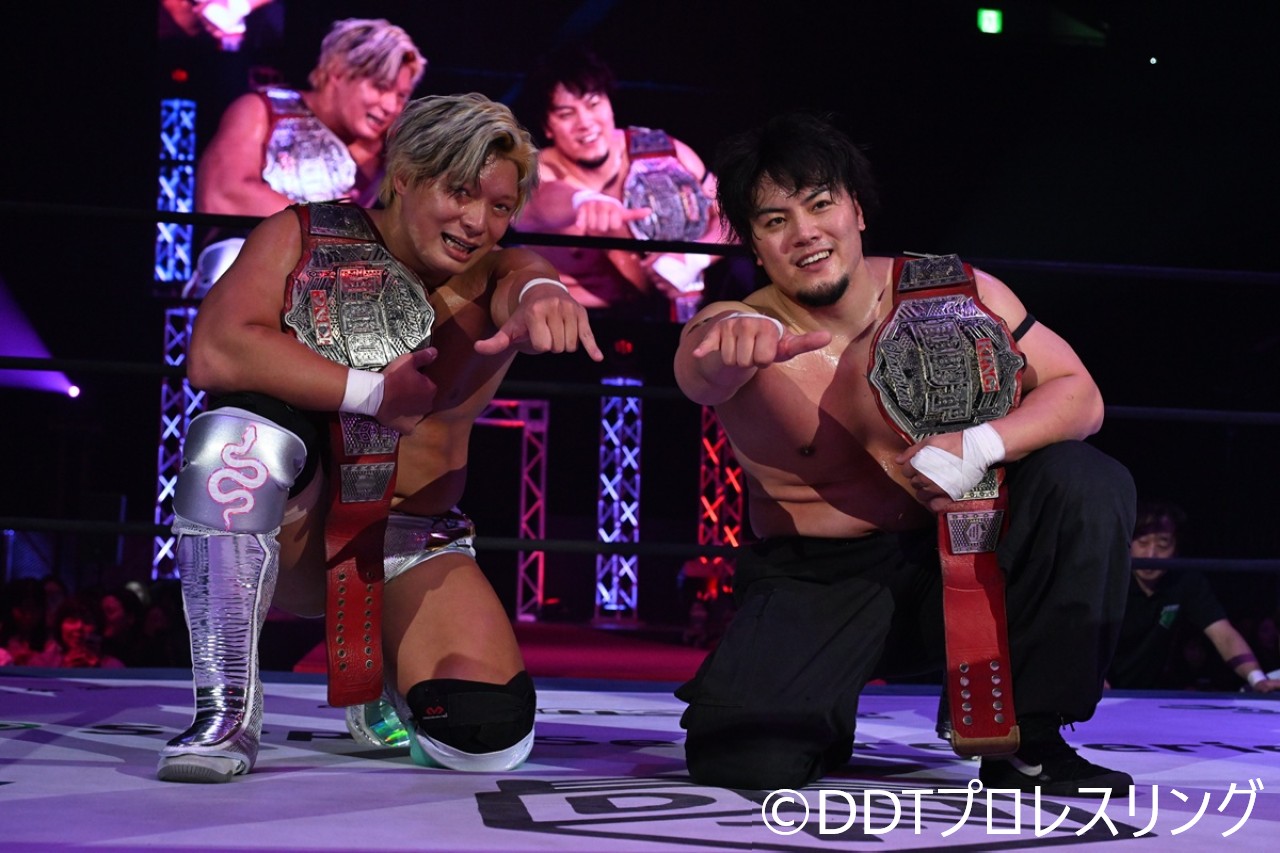 DDTプロレスが11月3日、東京・両国国技館で年間最大のビッグマッチ『Ultimate Party 2025』を開催した。ストレンジ・ラブ・コネクション(S.L.C.)のMAO&KANONが王者・飯野雄貴&納谷幸男、チーム200キロ(橋本千紘&優宇)とのサバイバル3WAYマッチを制して、KO-Dタッグ王座初戴冠を果たした。
