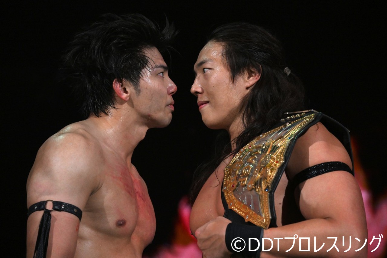 武知とは別々にコメントしたTAKESHITAは「久しぶりにDDTで試合して、正田と樋口も久しぶりにやって、その2人の成長も大いに感じられたし。デビュー戦から気にして見ていた武知海青も、彼がこれからプロレスラーとして歩んでいきたい道っていうのが見えたんで、すごく意味のある1試合だったなと思います。こうしてIWGPのベルトを持って帰ってこれたし、AEWでもトップを狙ってるから、DDTのみんなに負けない活躍。一つひとつが励みになってるんだというのを今日の試合で見せられていたならうれしいです。樋口とは強さを高め合った一人なんで。まだまだおまえ行けるよって、試合で伝えたかった」と試合を振り返った。