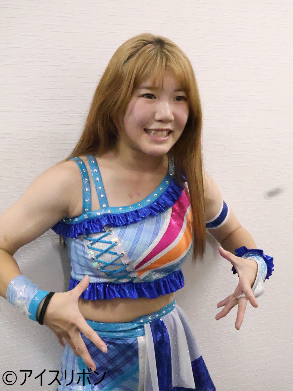 「絞り、関節技で足攻めをして弱らせるっていうのが作戦だったんですけど、効いてたのかなって。ずるいのかなって。でもプロレスっていうのは頭を使ってこそのプロレスですから。私のこの気持ちの部分で100%負けてなかったので勝ちました。」