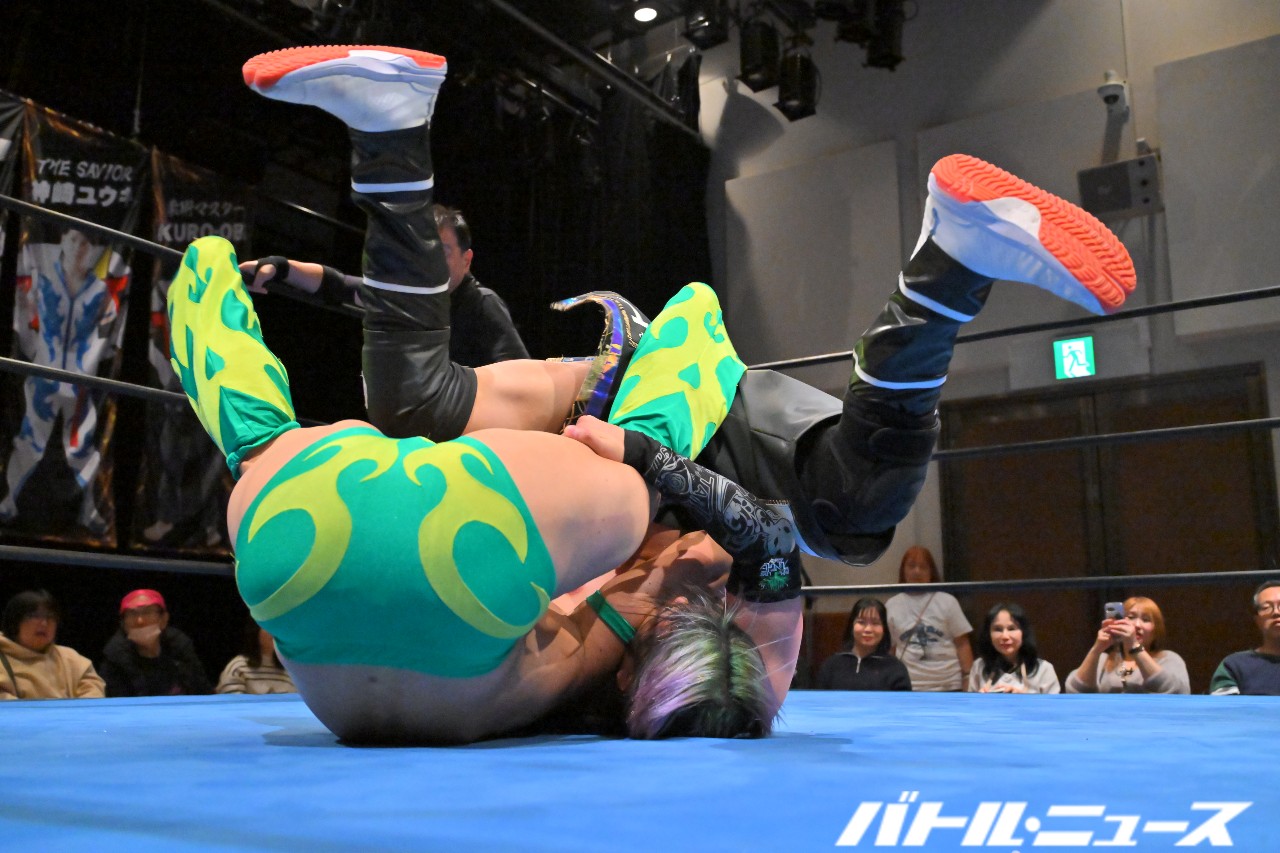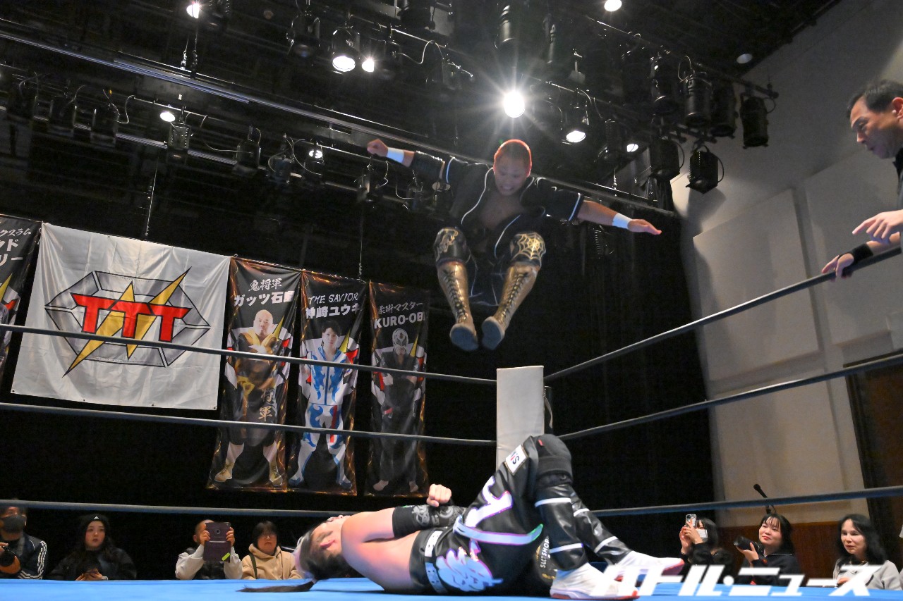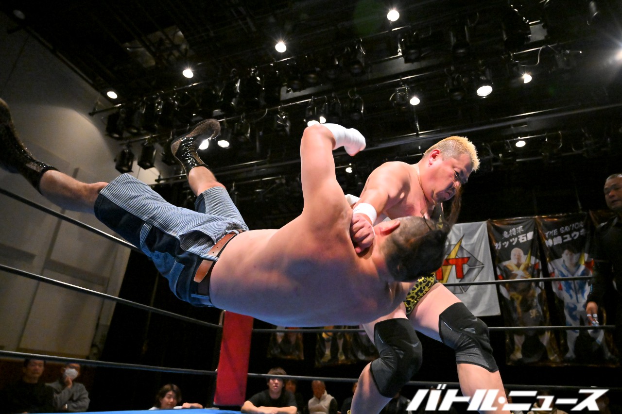 定は強烈なエルボーからロープに振ってスパインバスターで叩きつけ、瀧澤から3カウントを奪った。