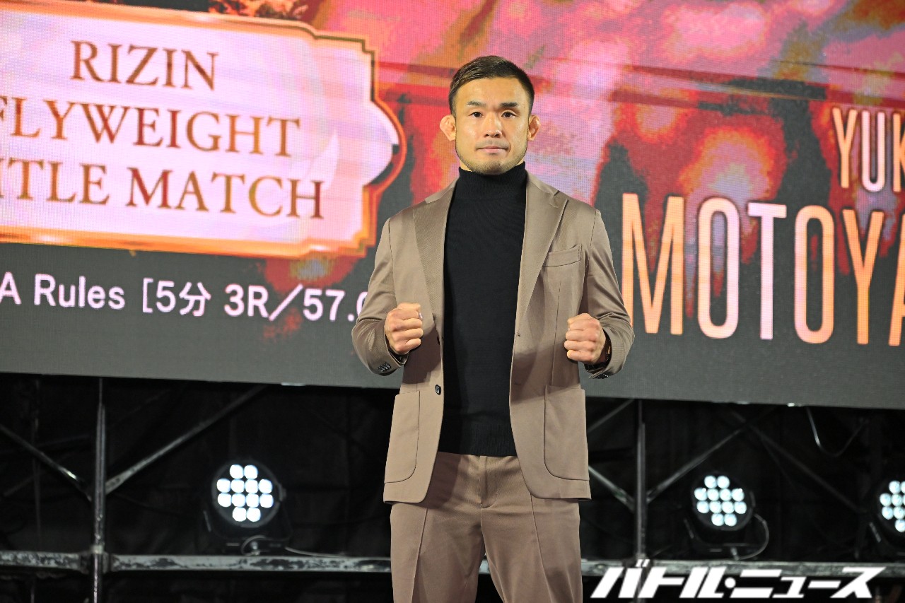 RIZIN旗揚げ戦から参戦している元谷友貴は「DEEPの元谷です。僕が優勝してベルトをいただきます。フライ級グランプリの決勝、相手が扇久保選手ということで本当に楽しみです。RIZIN10周年の年末に自分を出し切って、扇久保選手を超えて、僕を応援してくれる皆さんと一緒に喜びたいなと。ベルトを手に入れる準備はできているし、いいパフォーマンスできると思います。年末はRIZINで一緒に楽しみましょう。ありがとうございました」と、会見には出席できなかったが代読にてメッセージ。