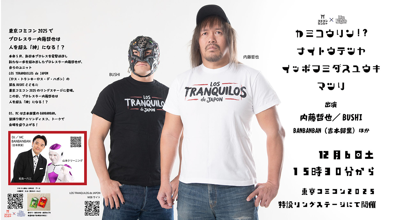 12月5日~7日に幕張メッセで開催される『東京コミックコンベンション2025』(以下東京コミコン)の6日に、“LOS TORANQUILOS de JAPON"(ロス・トランキーロス・デ・ハポン)内藤哲也&BUSHIの出演が発表された。