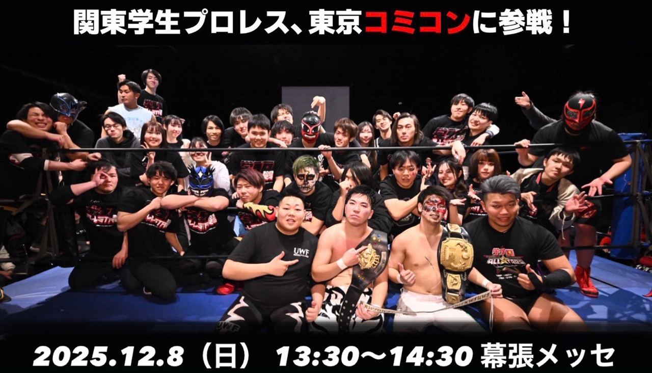 12月5日~7日に幕張メッセで開催される『東京コミックコンベンション2025』(以下東京コミコン)の7日、学生プロレスの試合が行われる事が発表された。
