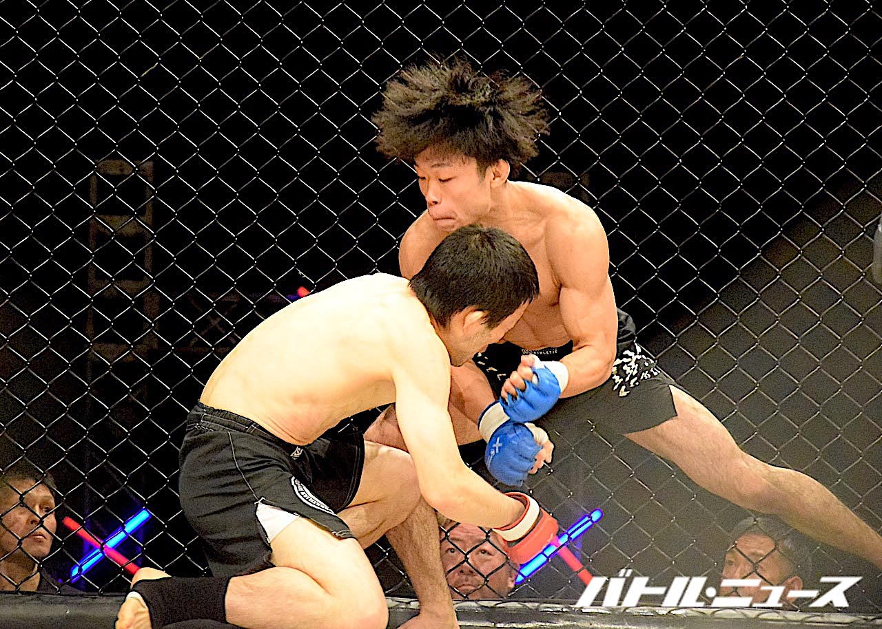 岡村がパンチで前に出ると、左右パンチがヒット! 北ダウン! 岡村はパウンドに入る。北がしがみつき、岡村がコツコツ殴って終了。