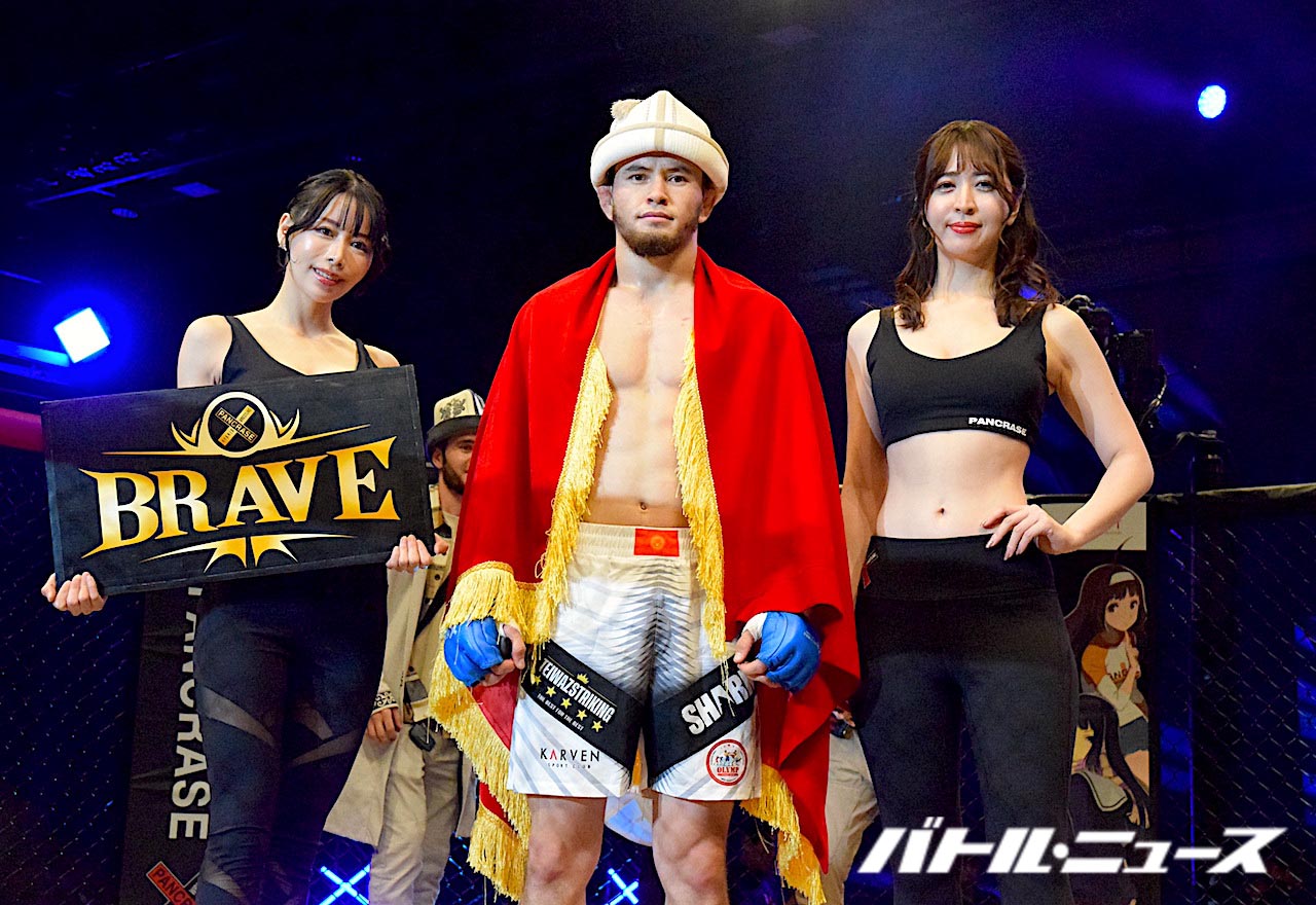 「皆さん、こんにちは。今日は皆さんありがとうございます。私は東京が大好きです。皆さんの中にキルギスの旗も見えて嬉しいです。今日は神様のおかげで勝つことができました。この試合の前に、この試合についてたくさん訊かれましたが、今日は素晴らしいファイトを見せようと思っていました。皆さん、ありがとうございます。