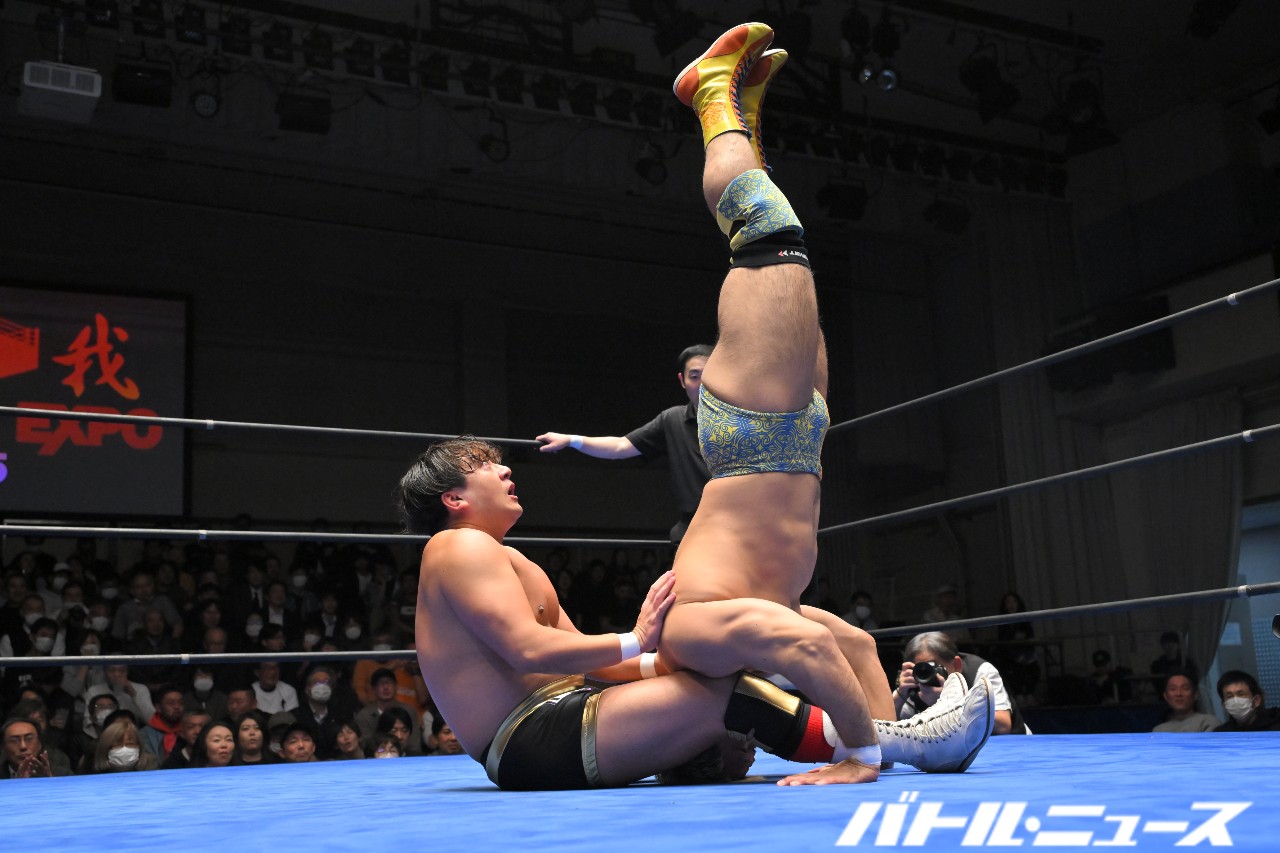 試合は基礎に忠実なグラウンドレスリングに始まり、LEONAがヘッドシザースに捕らえると、征矢は師匠に捧げるかのように美しい倒立で首を抜いて脱出する。