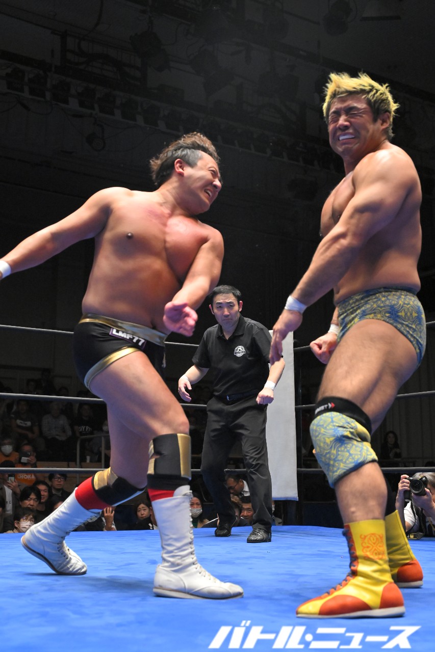 一方、征矢はLEONAとの対戦を振り返り「久しぶりのシングルマッチが続く戦い。全試合シングルマッチ。このカードを見たときに、自分の名前がそこにあって、本当に、本当に、心から光栄な気持ちでいっぱいです。藤波怜於南、俺はデビューする前のアイツしか知らない。プロレスラーを志してるとか全然感じなかった。分からなかったけど、でもプロレスラーになって今リングに上がってんだ。藤波怜於南選手はたしか10年以上やってるはずだろう。でもこういう形でシングルマッチが出来たことを光栄に思ってます。LEONA、まだ負けるわけにはいかないんだ。俺にはな、ここ(ハート)に!ここに!溢れんばかりのよ!情熱がよォッ!情熱がァ!情熱がァ~~ッッ!!溢れんばかりの情熱が詰まってるからよ。俺はまだNOAHでもやってくぜ。もっと高みを目指してやってく。でも今日はこういう形で呼んでいただけたこと、藤波辰爾さん、関係者の皆様、ありがとうございました!以上ッ!」と叫びながら荒々しく退席。おそらく皆が一番聞きたかったであろう内容は語らず去っていくという“らしさ”を見せた。