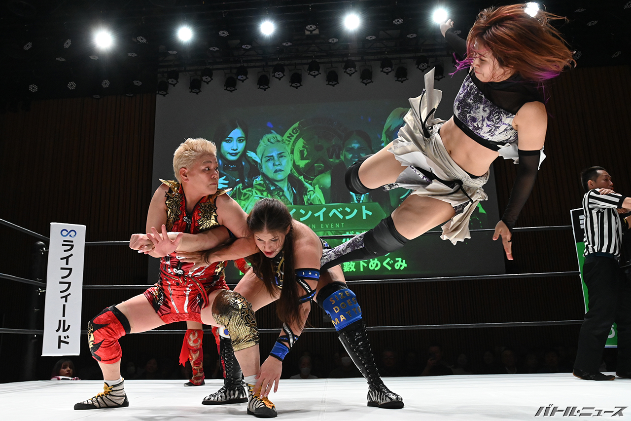 メインイベントでは、22歳で181㎝・91kgと女子選手の中では規格外の体格を誇る“大怪獣”ボジラがスターダムより襲来。神取忍&NØRI&高瀬みゆきvsボジラ&鉄アキラ&藪下めぐみという6人タッグマッチがメインイベントで行われた。