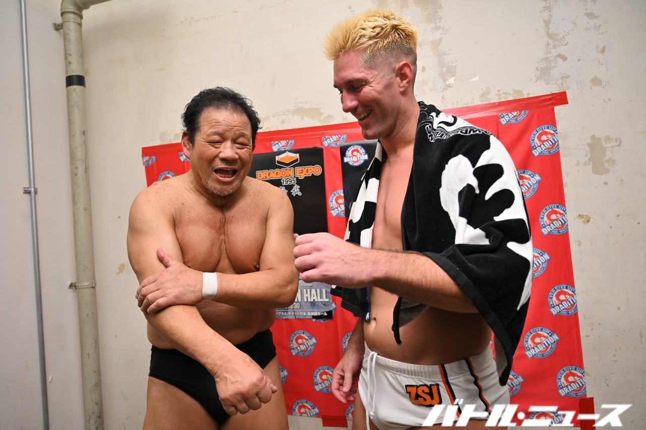 藤波も破顔しながら「ネクストワン!」と再戦に前向きな姿勢を見せ、最後の記念撮影後にはザックに無我のタオルをプレゼント。ザックはそれを肩に羽織り、深々と頭を下げた。