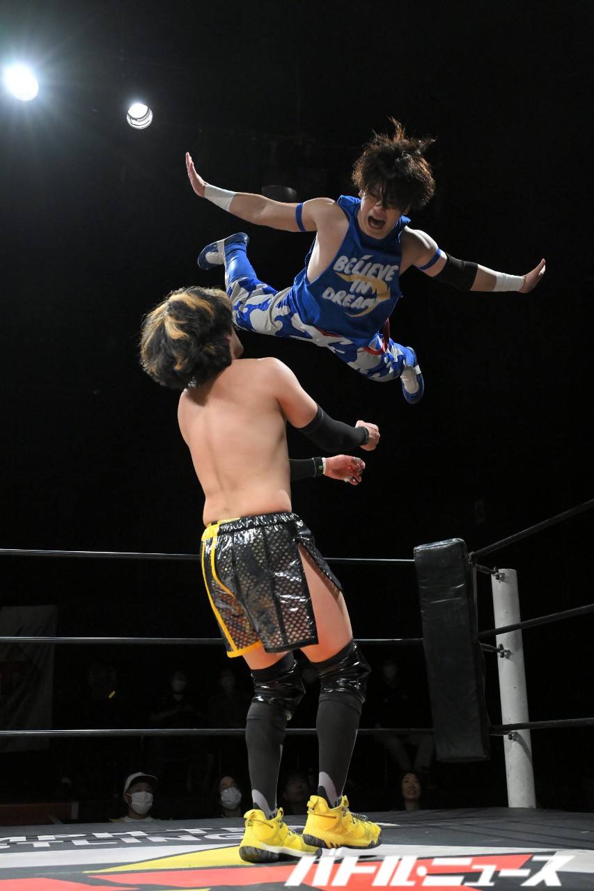 後藤が串刺しラリアットからランニング・クロスボディで圧殺。さらにブレーンバスターを狙うが、阿部が着地して張り手。倒れず耐えた後藤がショルダータックルで場外にふっ飛ばした……かと思われたが、阿部はアイル・ビー・バックで帰還して伊良部パンチ。さらにスクールボーイ、バックスライドと畳み掛けるが、キックアウトした後藤がショートレンジ・ラリアットで倒してセントーンを発射。これをかわして自爆させた阿部が十字架固めで捕らえて3カウントを奪った。