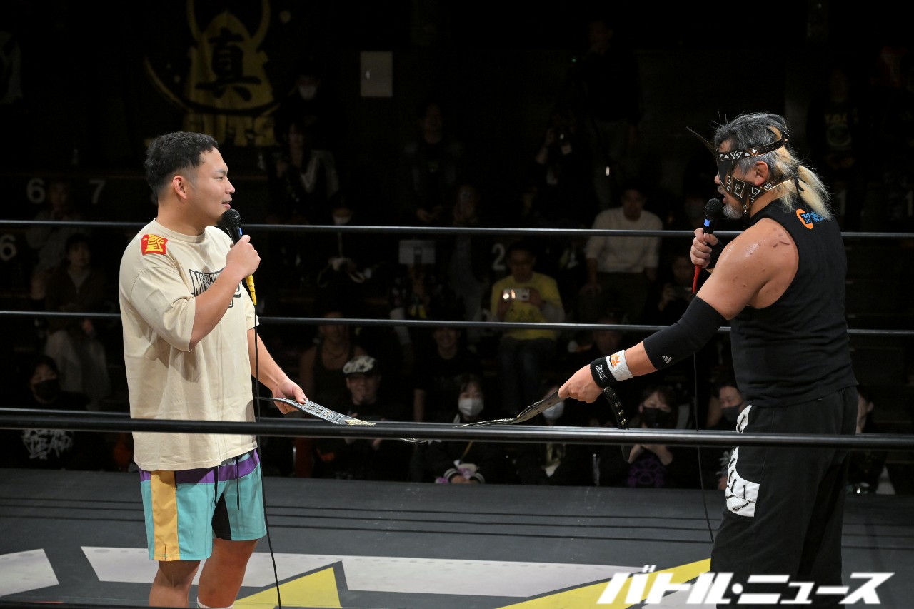 中野「会長、いいスか?(※石川会長が即快諾)おっしゃ~!お前ら覚悟しとけよ!12月6日の新木場大会で勝負だ!」