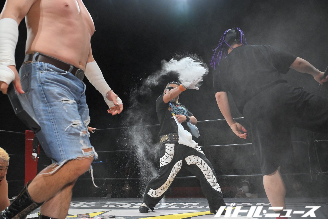 藤田&瀧澤がリングに上がってガッツをリンチ。助けに行こうとしたミステリー&橋之介&神崎は藤田のパウダー攻撃を食らって救援に行けず。