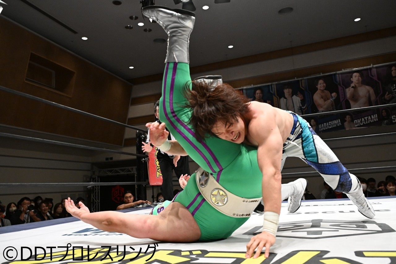DDTプロレスが11月22日、神奈川・横浜ラジアントホールで『ハマのリングで愛を叫べ!』を開催した。ふだんはDDTバラエティ班での戦いが多いスーパー・ササダンゴ・マシンが11・30後楽園での王者・上野勇希とのKO-D無差別級&DDT UNIVERSAL両選手権試合に向け、大マジメに2冠獲りを宣言した。