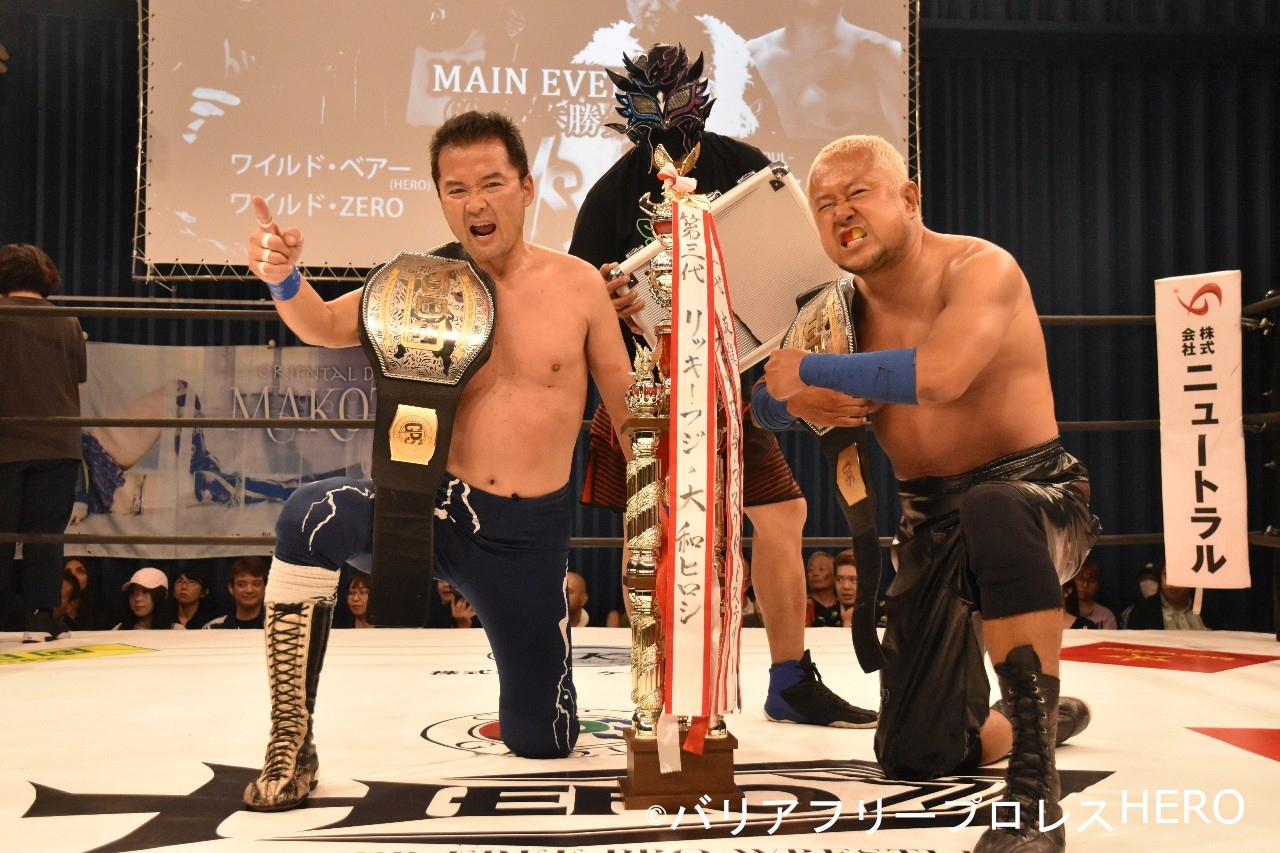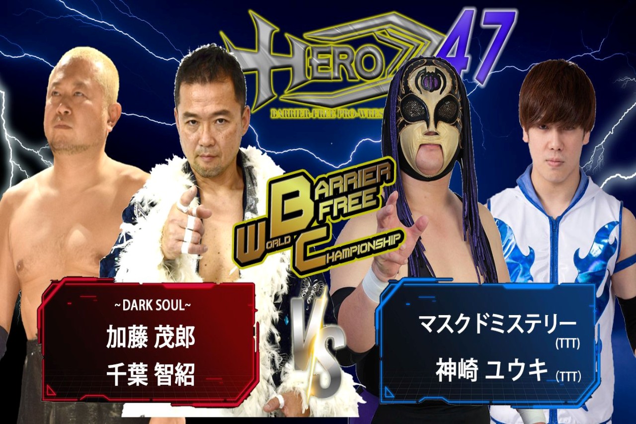 『障害があってもなくても楽しめるプロレス団体』をコンセプトとするバリアフリープロレスHEROが11月29日、東京・新木場1stRINGで『HERO47』を開催する。同大会のメインイベントでWBC(ワールド・バリアフリー・チャンピオンシップ)タッグ王座に挑む、マスクドミステリー&神崎ユウキのTTT軍がベルト獲りを宣言した。