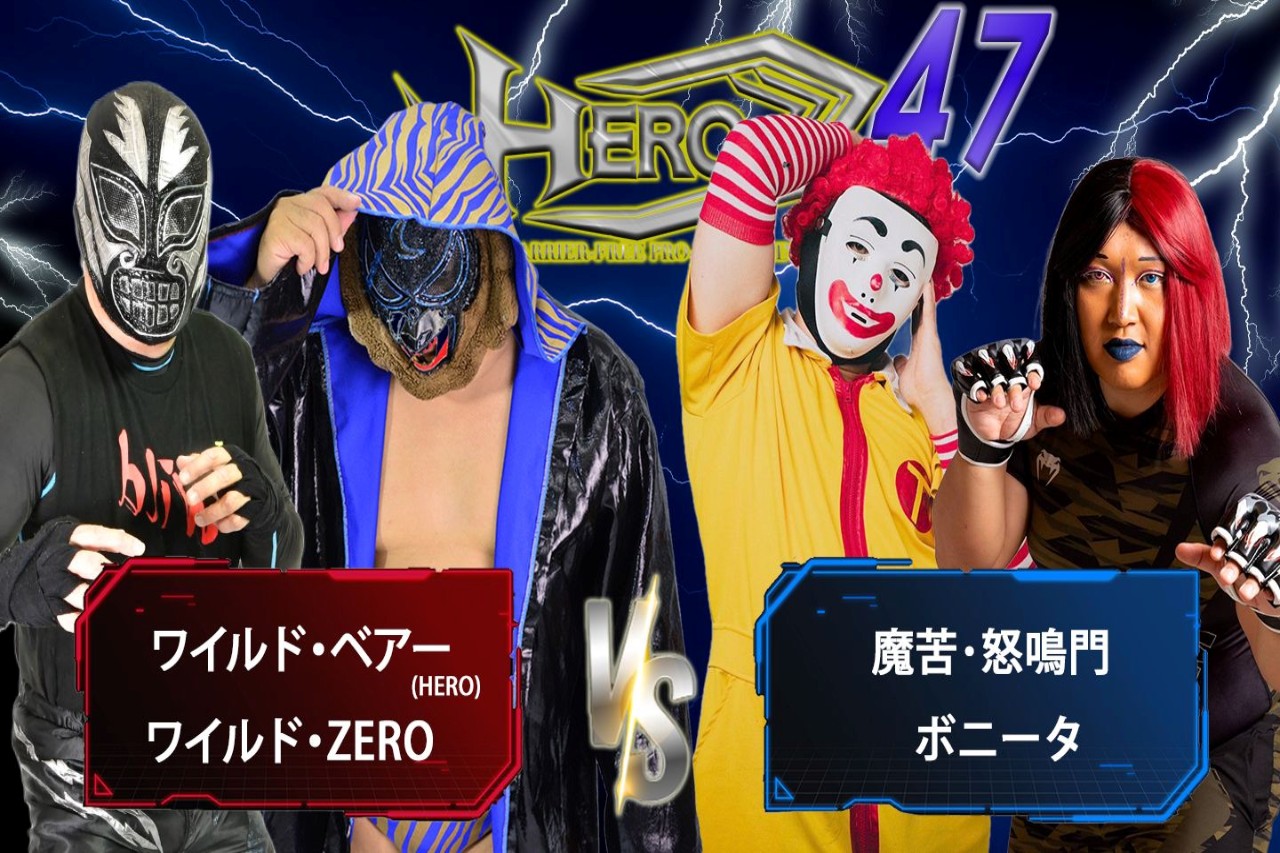 7・20インイタでWBCタッグ王座から陥落したベアーは、前大会(9・27インイタ)で第1試合からの再起を図った。ところが、変態の怒鳴門、ジェンダーレス戦士・ボニータとの3WAY戦で2人のセクハラ攻撃を受け、散々な目に遭った上での敗北に怒り心頭。「ZEROと共に叩き潰してやる!」と…。ここに前WBCタッグ王者組vs変態&ジェンダーレスの、怒髪天のタッグマッチが実現。ベアーとしてはなんとしても前回の屈辱を晴らし、HEROマットの最前線に戻りたいところだ。