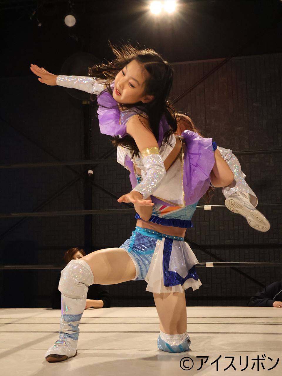 距離を取ったきらりが「正々堂々とやろう!」とませの追撃を制止すると、ませもうなずき仕切り直し。ロックアップからきらりがヘッドロック。ませがロープに振ってうつ伏せになるも、きらりがその腰にフットスタンプ。さらに首投げからボディシザースで絞める。ませが上体を倒してカバーもカウント2。