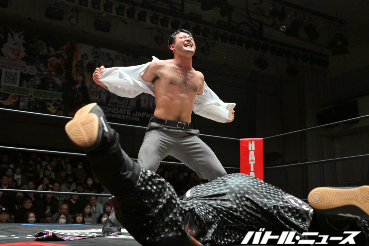 3日、東京都・後楽園ホールにてDRAGON GATE『KING OF GATE 2025 ―最終戦―』が開催。新橋二郎とパンチ富永がシングルマッチを行った。