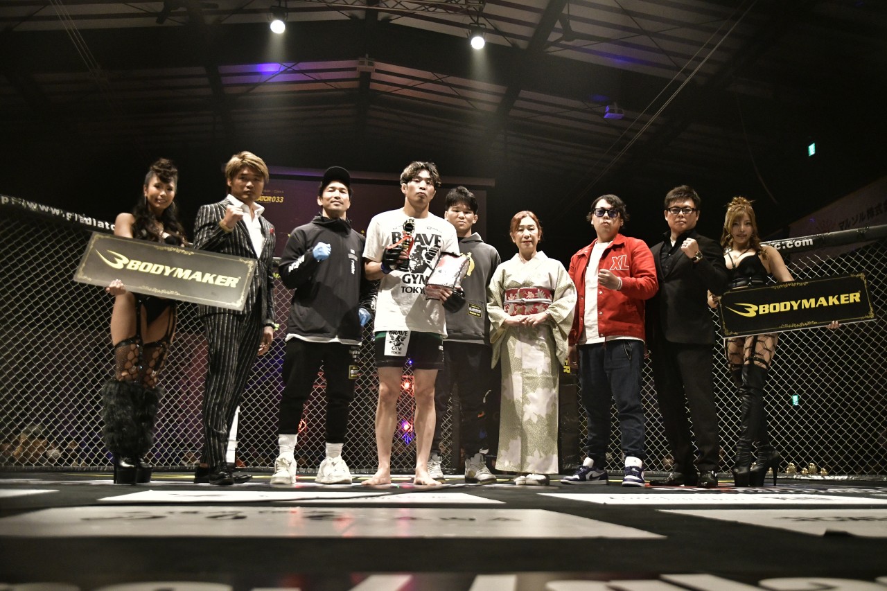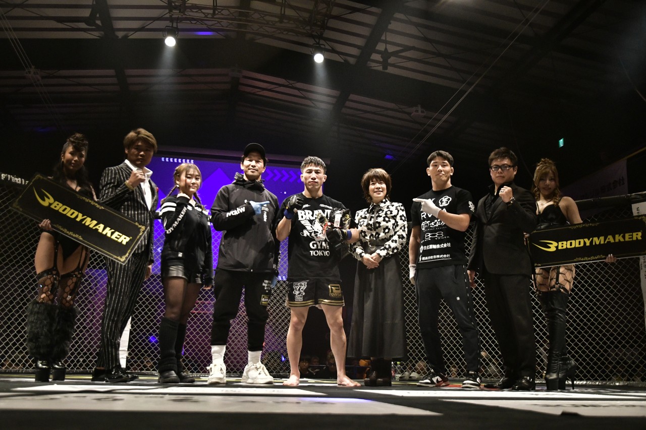 出場全選手がケージの内と外に勢ぞろいしたあとBODYMAKER社長がマイクで挨拶を行なった。