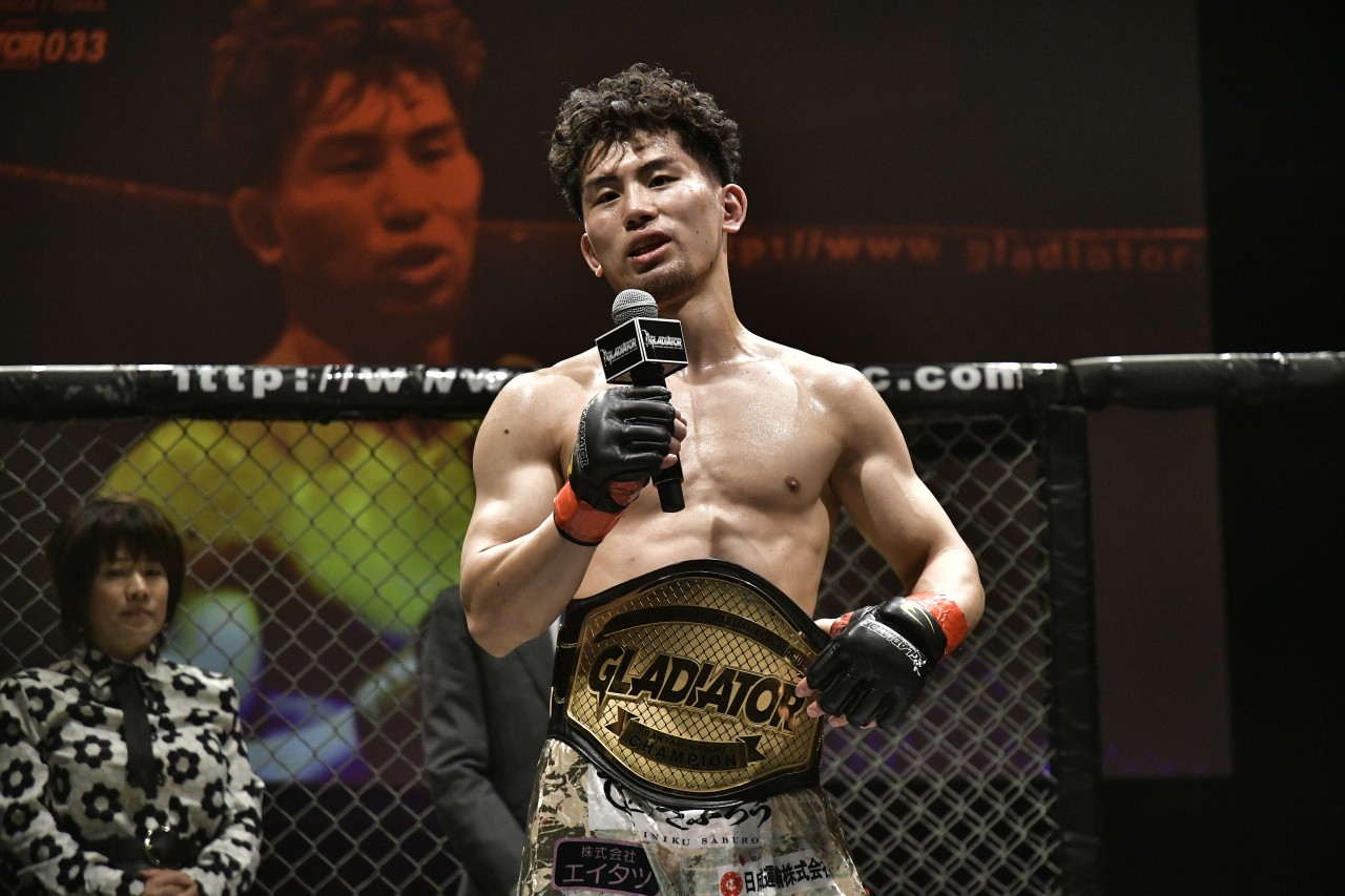 今井「約2年前にGLADIATORに参戦してGLADIATORのベルトを獲ることを目標に毎日練習して、才能とかなかったけどやっとチャンピオンになることができました。今回良い勝ち方が出来たんで、RIZINに出たいんで。RIZINの関係者の皆さんこれ見てたらオファーください!」