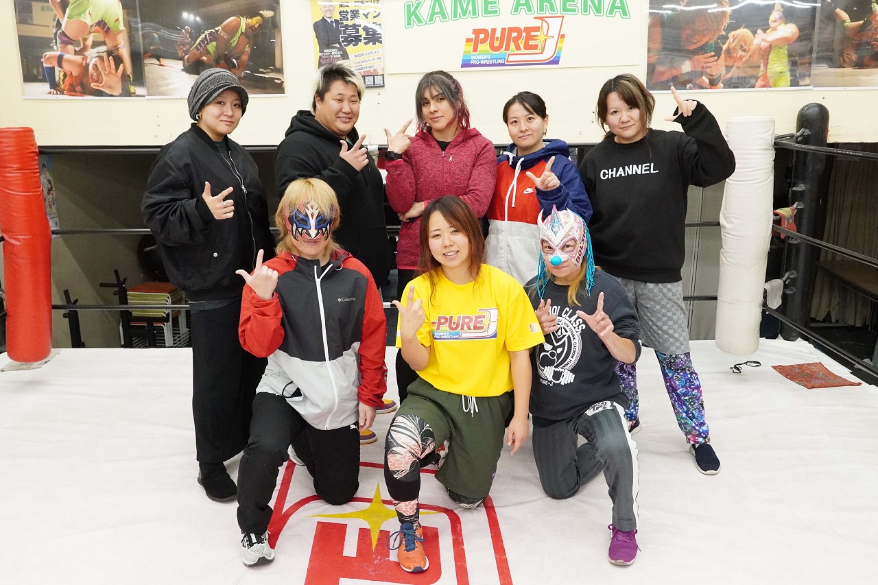 4日(木)、PURE-J道場・亀アリーナにて練習生の未愛(みあ)がプロテストに挑戦。基礎の運動から受け身、ロープワーク、スパーリングと続き、「とにかく筋トレが大好きで3年間ぐらい続けてたので、スクワットが80kgぐらいは持つことができます」と自己PR。その後、合格が告げられた。