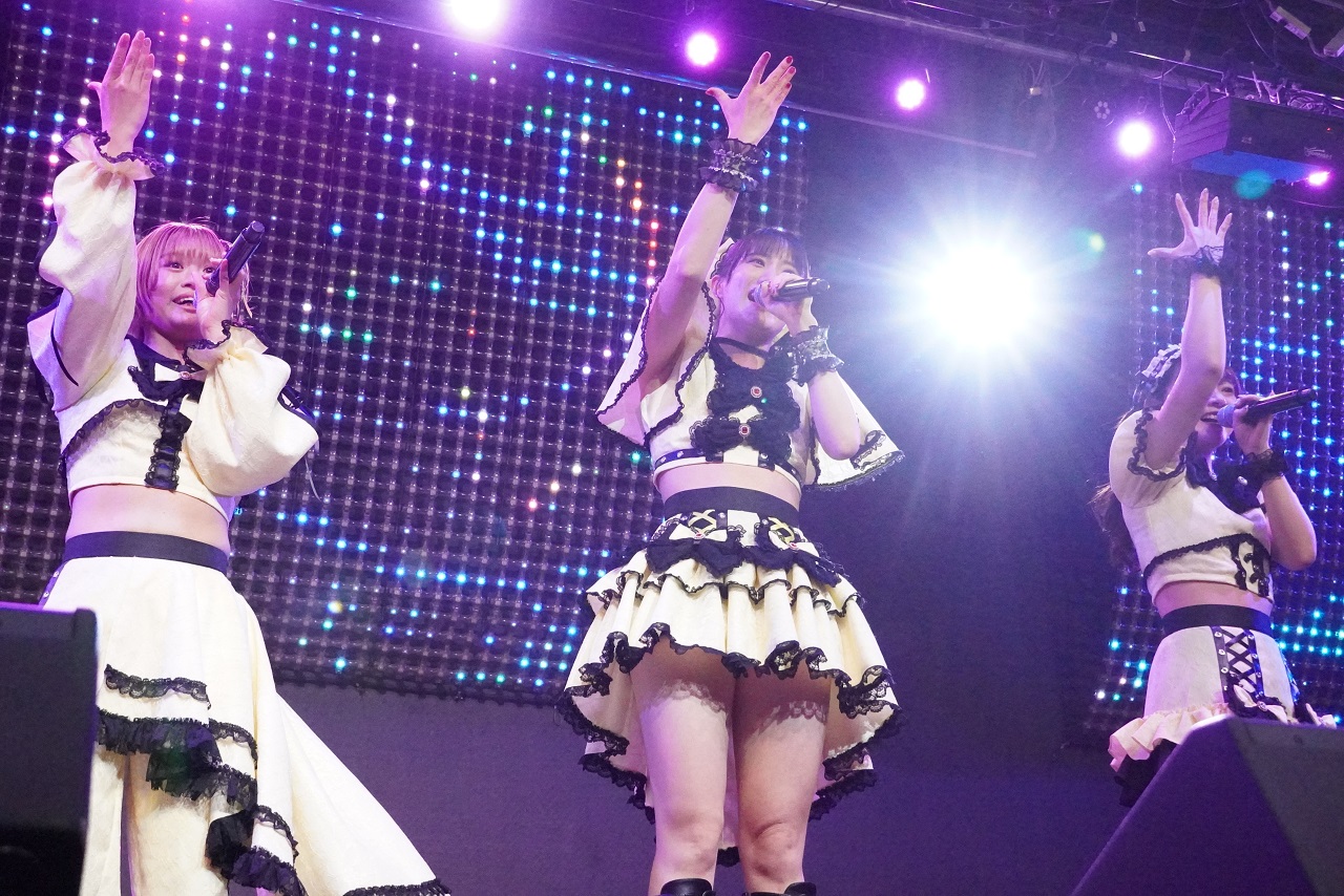 4日、岐阜県を拠点に活動するメルヘンロックアイドル『蜂蜜★皇帝』(はちみつエンペラー/紅羽まりん、星乃純奈、夢乃なつみ)が、秋葉原・P.A.R.M.Sにてレコ発東名阪ツアー東京公演を開催。『仮面女子』らをゲストに迎え、ハイレベルなパフォーマンスで会場を魅了した。