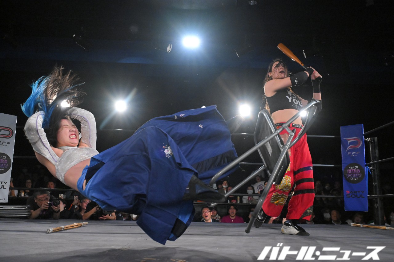9日、東京都・新宿FACEにてPPPTOKYO『Galaxy Revolution―夢幻なる宴―』が開催。エチカ・ミヤビが世羅りさと初のハードコアマッチを行った。