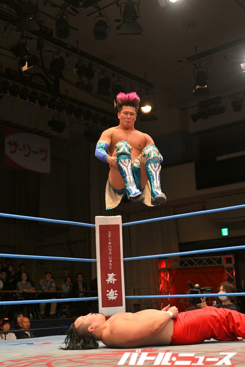 光留を井上が、むーちゃんせーちゃんを小藤が場外に蹴り出し、HAYATOがプランチャで追撃。亮生が立花にファイヤーバード・スプラッシュを見舞って3カウントを奪った。