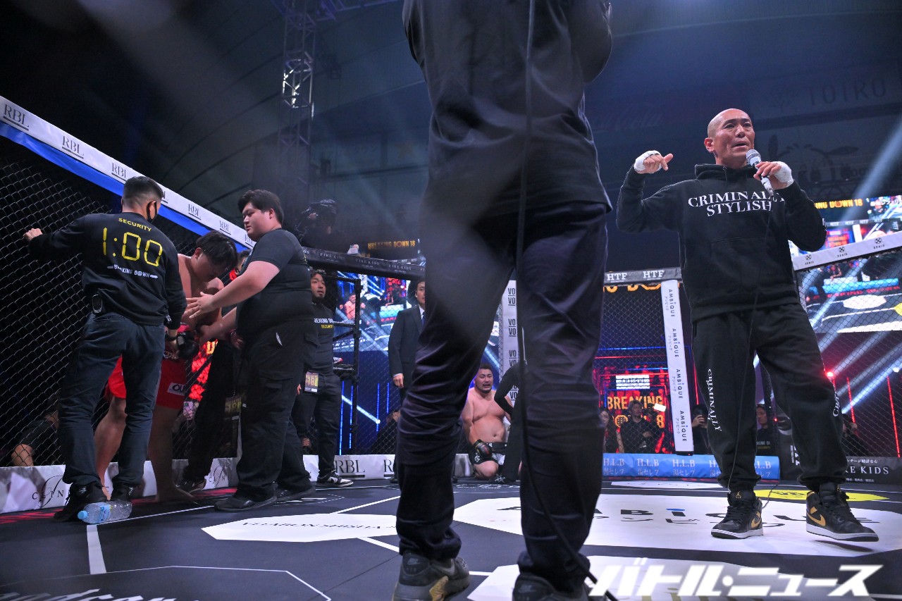 さらに瓜田純士らがケージに入り村田たちを外に引きずり出すが、赤パンとりゅう君はマイクの応酬に。