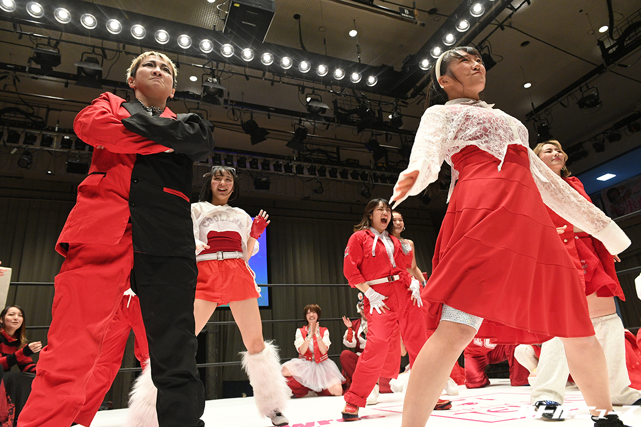 茉莉乃「ありがとうございました!じゃあ本日試合した皆さん、上がってきてください。お願いします。全然伝わらなくてびっくりしちゃった。プリンセス天功さんこちらに立っていただいて。本日は、ド年末にもかかわらず足を運んでいただきありがとうございます!2025年も、沢山ありがとうございました!2026年も是非とも皆様アクトレスガールズをよろしくお願い致します!それでは!いきます!せーの!強く!優しく!あなたに一生懸命!アクトレス~ガ~ルズ~!!ありがとうございました!」