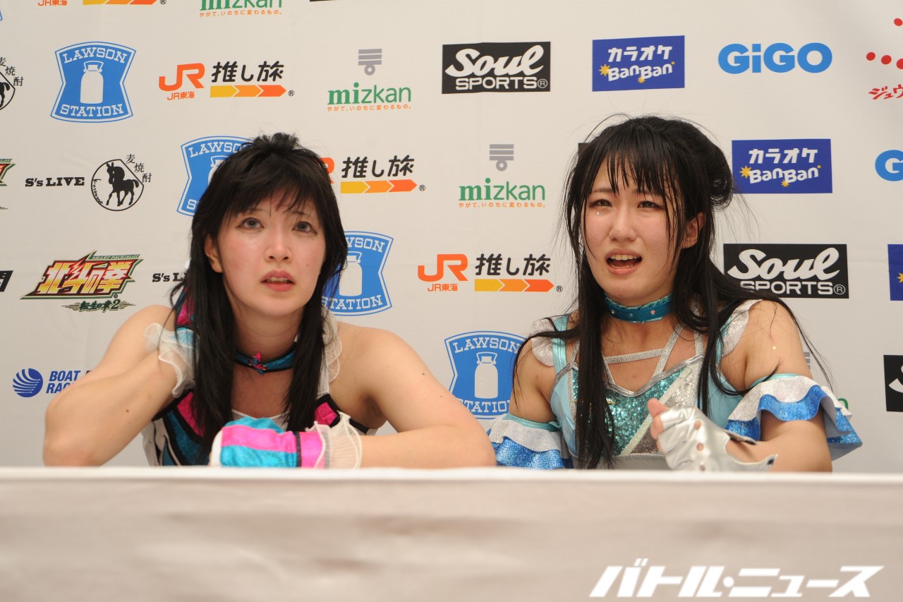 タッグ王座であるゴッデス・オブ・スターダム王座を持つのは【H.A.T.E./BMI2000】の刀羅ナツコ&琉悪夏。