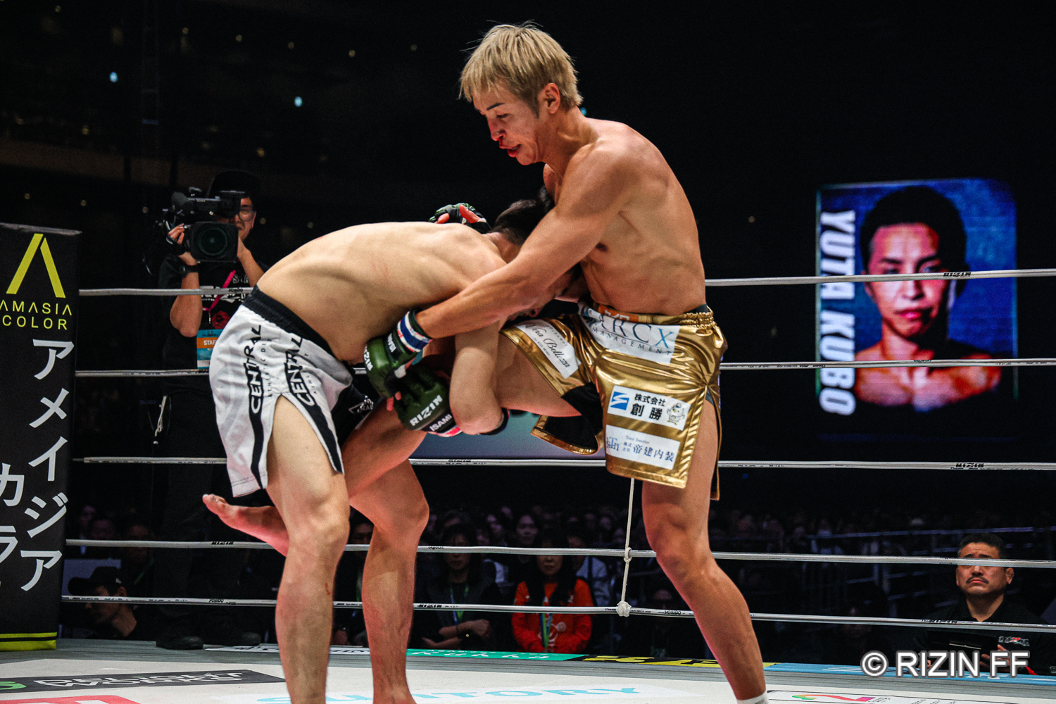 久保は「リング上でダウトベックと約束したんですけど『絶対リマッチしよう』と約束したんで、是非この続きを、再戦させてほしいと思います。みなさんが評価して、どういう評価をいただけるのかなって感じに尽きると思うんですけど、僕は腐ってもK-1やGLORYでチャンピオンになってきた男なんで、絶対RIZINフェザー級ではストライキングにおいては強いぞってことでやってきたんで。相手の印象はもちろん、強いことは分かってたんで、自分がやってきたことのプライドだったり尊厳を持って挑んだんで、こういう結果になって残念だなと思います」と語る。