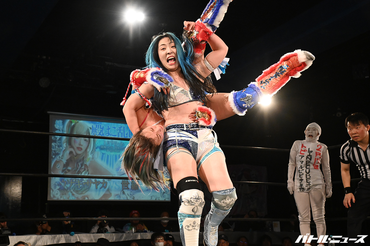 1月9日、新宿FACEにてウナギ・サヤカ自主興行7番勝負第6弾『殿はご乱心 青を纏いて、極彩に翔ける。』が開催。世羅りさとウナギ・サヤカの最後のシングルマッチが行われた。