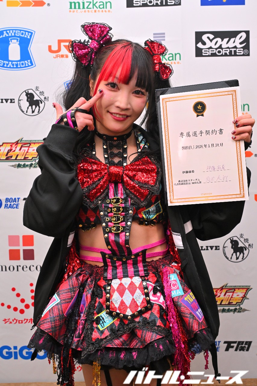 10日、東京都・後楽園ホールにて『スターダム旗揚げ15周年記念シリーズ NEW YEAR STARS 2026 in KORAKUEN DAY1』が開催。伊藤麻希がスターダム所属となったことが発表された。