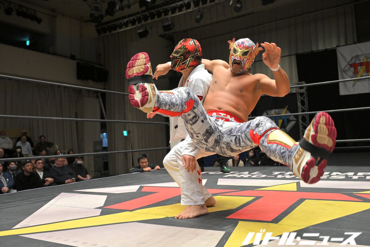 ダイスケ「後楽園にお集まりの皆さん、こんばんは!8年前に引退して、本日限定復帰3回目のダイスケです!引退してからシングルは初だったんで、やっぱり橋之介は強くて負けちゃいましたけど、まだ……まだまだ、動けるかな?2026年1発目ということで、今年の抱負!ダイスケ、本格的に!……限定復帰します!TTTのためだけに仕事とスケジュールが許す限り、2026年は年に1回と言わず、もうちょっと団体のために働いて参ろうと思っております。なので、本格的な限定復帰です!年に何回出れるかわからないですけど、とりあえず次回は2月14日、新木場大会!皆さん、新木場でお会いしましょう!」